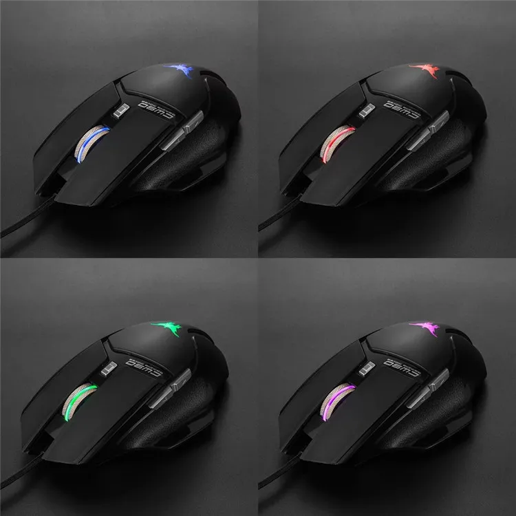 Регулируемая скорость вашего DPI: 4 скорости регулировки DPI, до 3800 DPI(800-1500-2500-3800); CW90 обеспечивает экстремальную стабильность во время игр. Дышащий светодиодный светильник: 4 одиночных цвета дыхательный светильник, каждый цвет представляет различные DPI. 800 DPI красный дыхательный светильник, 1500 зеленый, 2500 синий, 3800 светильник фиолетовый. Оптическая игровая мышь 6D: переключатель режимов влево/вправо/Mid/вперед/назад/DPI. Функция быстрого большого пальца: Быстрый вперед или назад при просмотре веб-страниц, вперед или назад в том же окне папки. Прочный в использовании и идеальная ручная работа: Logitech style mo Use, отличное надежное качество сборки, солидный, не скрипучий на ощупь, хорошее текстурирование по бокам и плетеный шнур с застежкой-липучкой, очень прочный в использовании; Чрезвычайно удобный захват, внутренняя паза для большого пальца, игровая мышь среднего размера, обеспечивает удобную посадку, Долгосрочное использование без усталости. Совместимая система: Windows 98/ 2000/XP/7/8/10/Vista 7/Vista 8. Технические характеристики: Модель: Combaterwing CW90 Мастер-программа управления: AVAGO 5050IC + мастер-план Ключевая жизнь: 20 миллионов раз Оптическая Частота выборки: 4500 кадров в секунду Максимальная скорость отслеживания: 30 дюймов в секунду Ускорение: 8G Рабочее напряжение: до 4,75 В постоянного тока Рабочий ток: 70 мА-200 мА (макс.) Точек на дюйм: 800-1500-2500-3800 (по умолчанию соответствует цвету дыхание светильник: красный-зеленый-синий-фиолетовый) Скорость возврата: 1000 Гц Длина кабеля мыши: прибл. 1,9 см/6.23ft Мышь Цвет: черный Размер мыши: прибл. 13,3*7,8*4,4 см/5,2*3,1 * 1.7in Вес мыши: 163g/5,7 oz Посылка Размер: 13,5*10*5,6 см/5,3*3,9 * 2.2in Посылка Вес: 200 г/7,1 oz Посылка содержание: 1 * игровая мышь CW90 1 * многоязычное Руководство пользователя