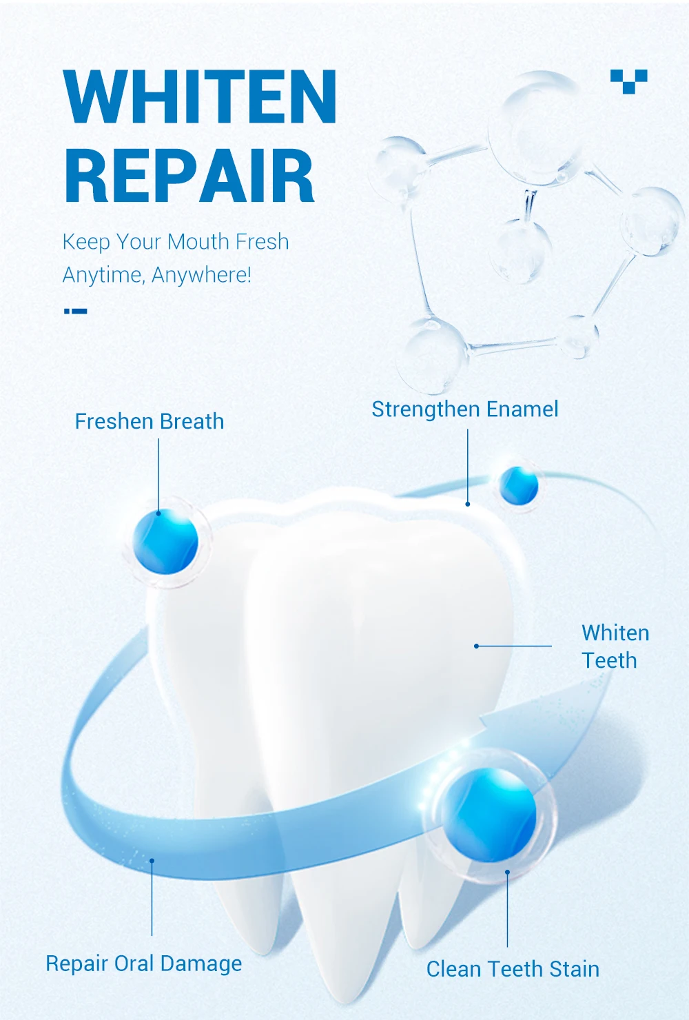 Держите рот свежим в любое время и в любом месте! Укрепления эмали Освежить дыхание Отбеливают зубы Чистые зубы пятно Ремонт оральный повреждений
