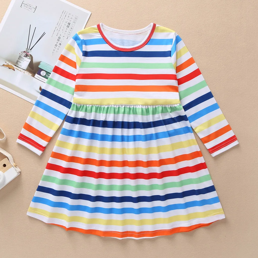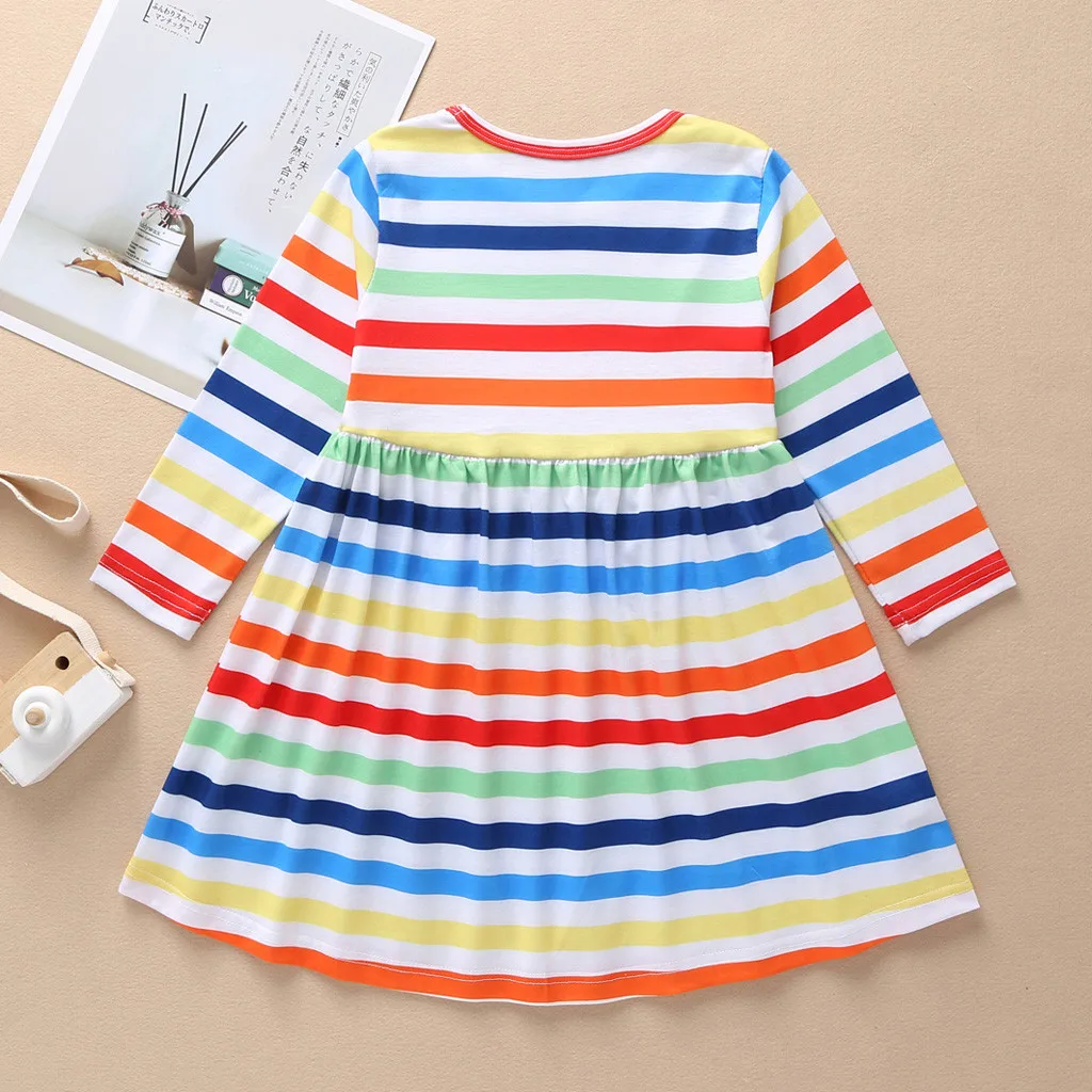 Осеннее платье принцессы в полоску с длинными рукавами для маленьких девочек