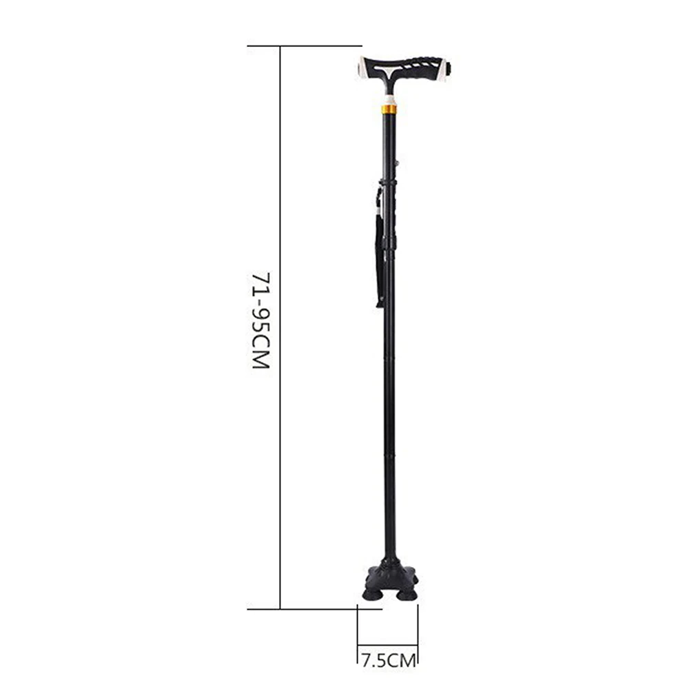 LED Light Folding Walking Stick Trekking T-handle Collapsible Telescopic Hiking Cane Four-legged With Lamp Non-slip Safe Stick 30