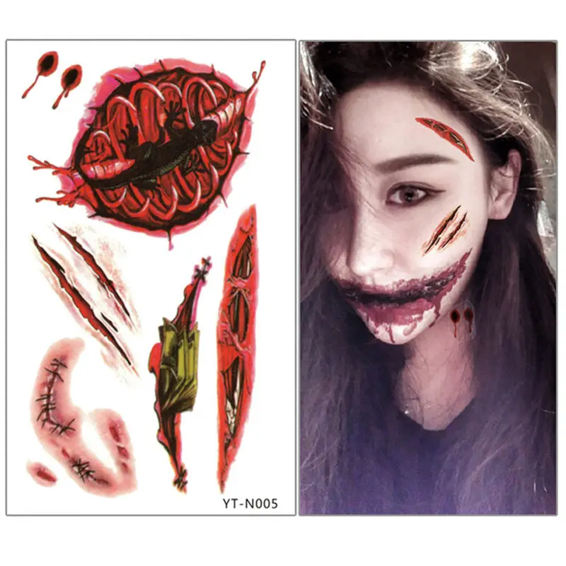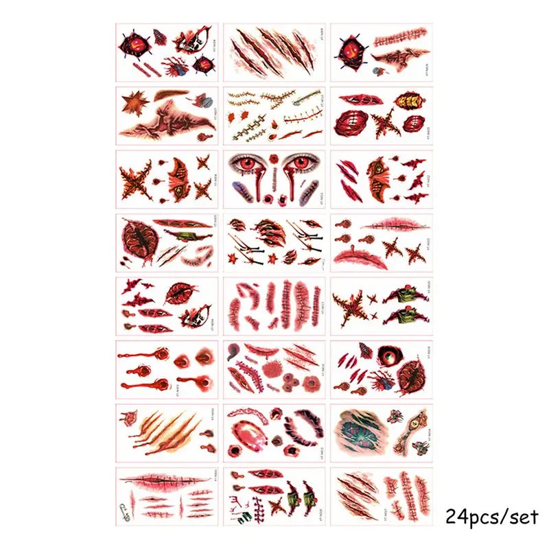 24 шт Временные наклейки на Хэллоуин, шрамы ужасов, макияж, татуировки, реквизит, художественные наклейки, наклейки на татуировки для Хэллоуина