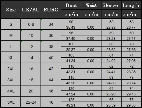 Size EURO Size UK/AU Size Bust Sleeve Length
