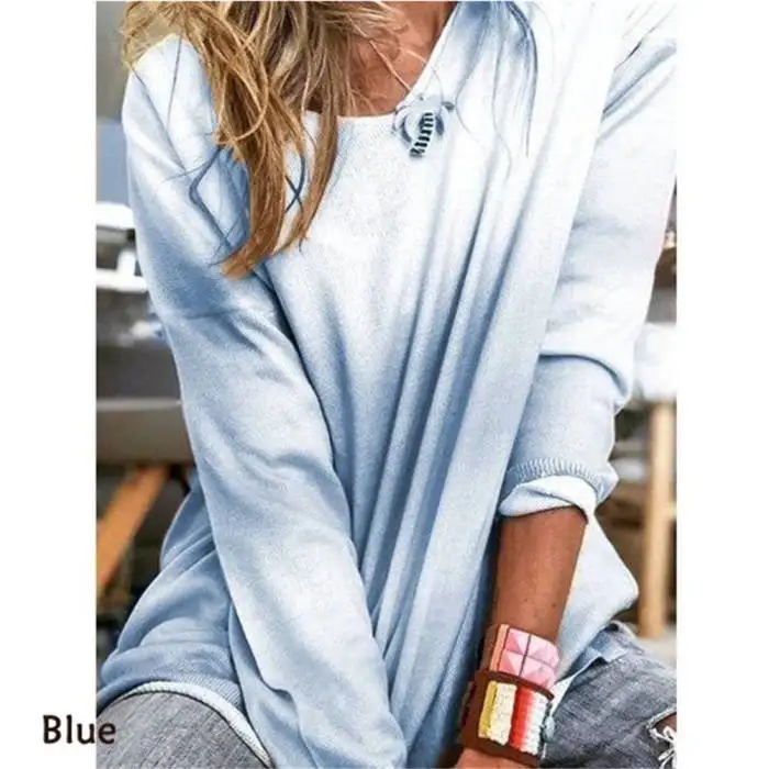 NEW Women Gradient Color T-shirt Round Neck Long Sleeve Pullover Shirt Casual Tops