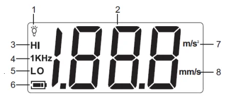 8). При измерении скорости, ЖК-дисплей отображает elocity блок: мм/с; при измерении смещения ЖК-дисплей отображает блок смещения: мм.