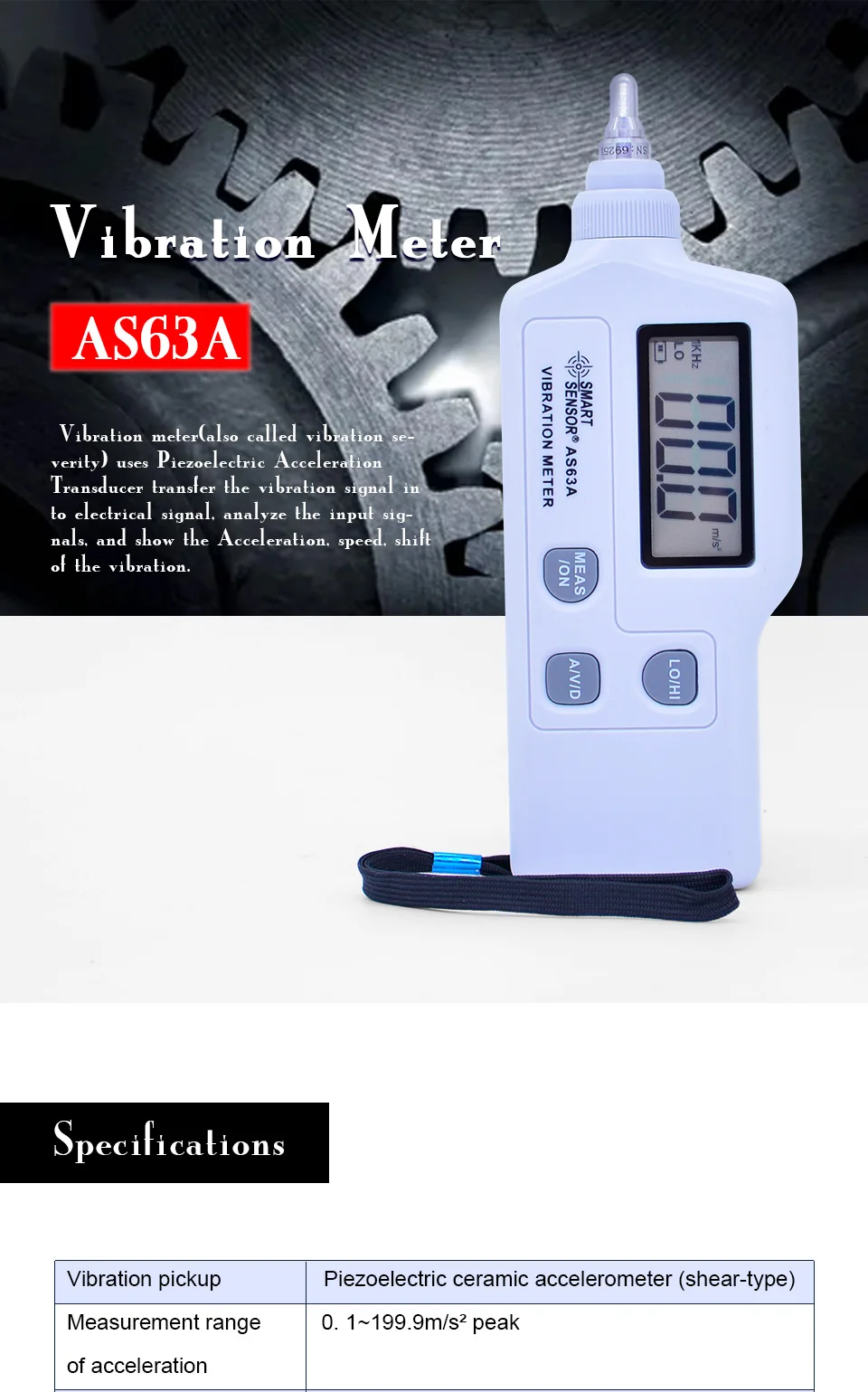 Смарт-Датчик Виброметр (также называется вибрацией) использует пьезоэлектрический датчик ускорения передачи вибрационного сигнала в электрический сигнал, анализ входных сигналов, и показывает ускорение, скорость, сдвиг вибрации. Он широко используется в линиях энергии, нефтехимического, машинного производства, металлургии, транспортных средств и т. Д.