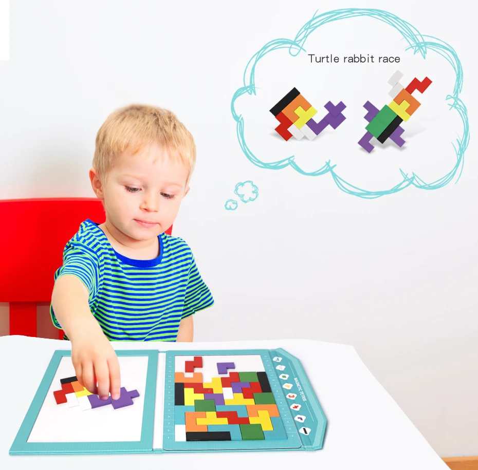 Магнитный деревянный тетрис головоломки доска Tangram головоломка дети Игра-Головоломка Развивающие детские игрушки подарки магниты на холодильник