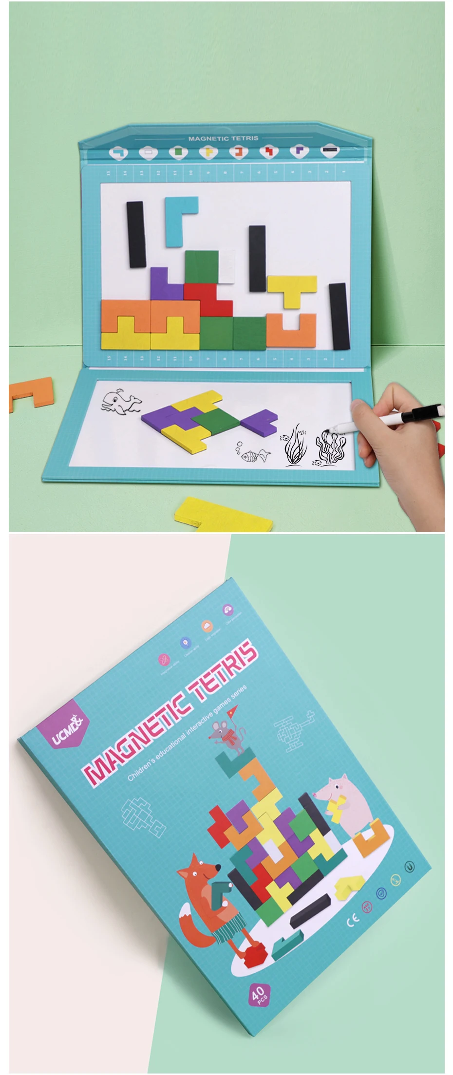 Название продукта: магнитный тетрис материал пазла: дерево, резина магнитные аксессуары: 40 деревянных Тетрис, ручка для доски особенность: магнитные, творческие, развивающие игрушки