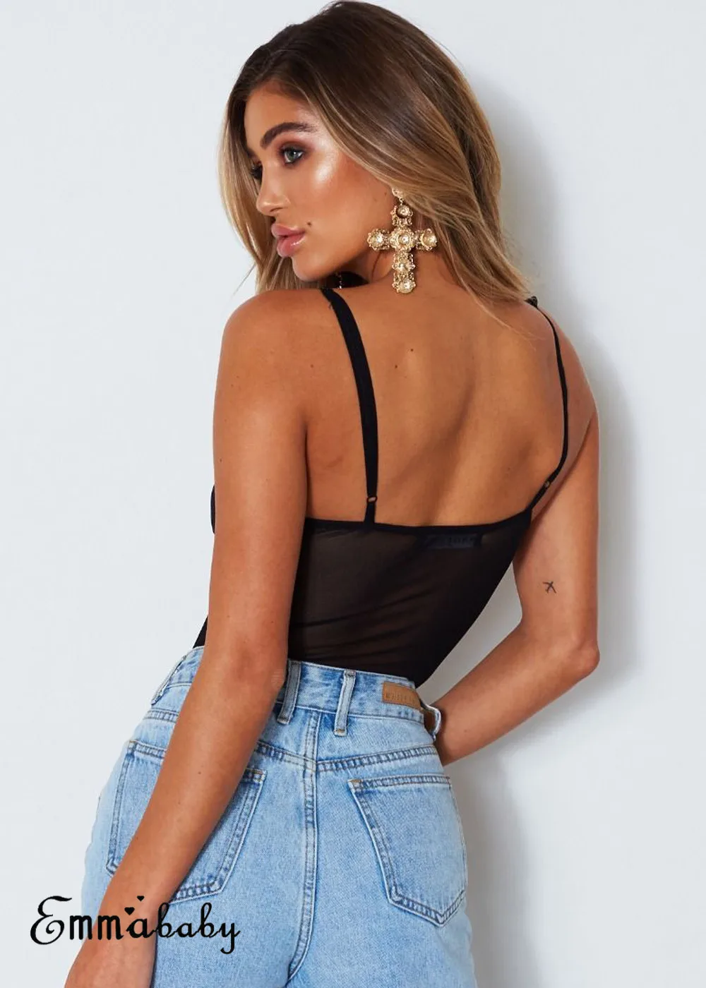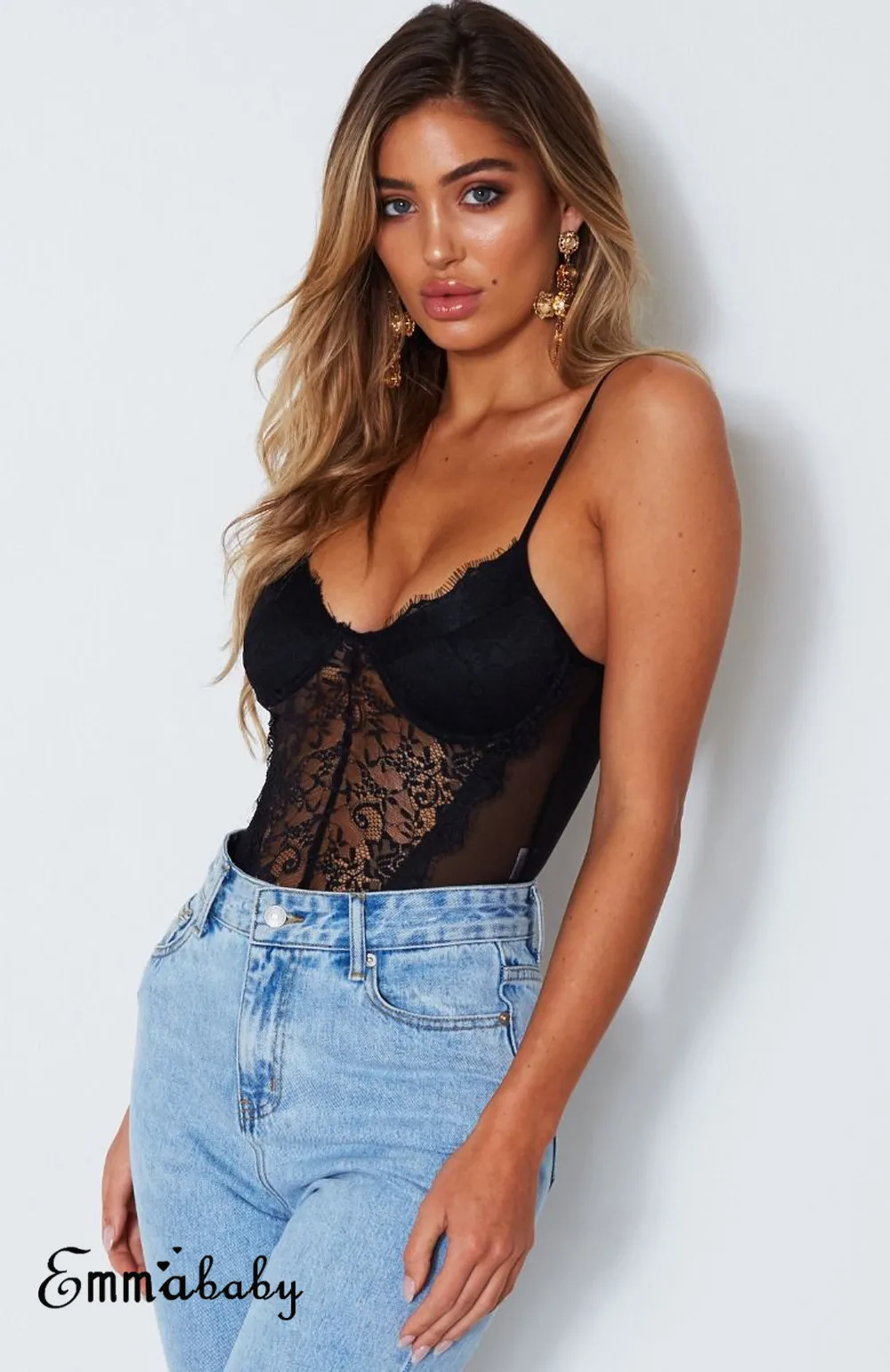 Новинка, модные сексуальные женские кружевные эластичные трико без рукавов с V-образным вырезом, облегающие боди, топ, блузка, комбинезон