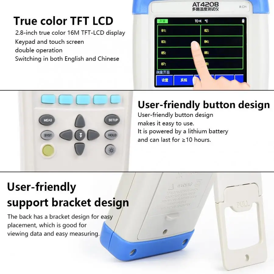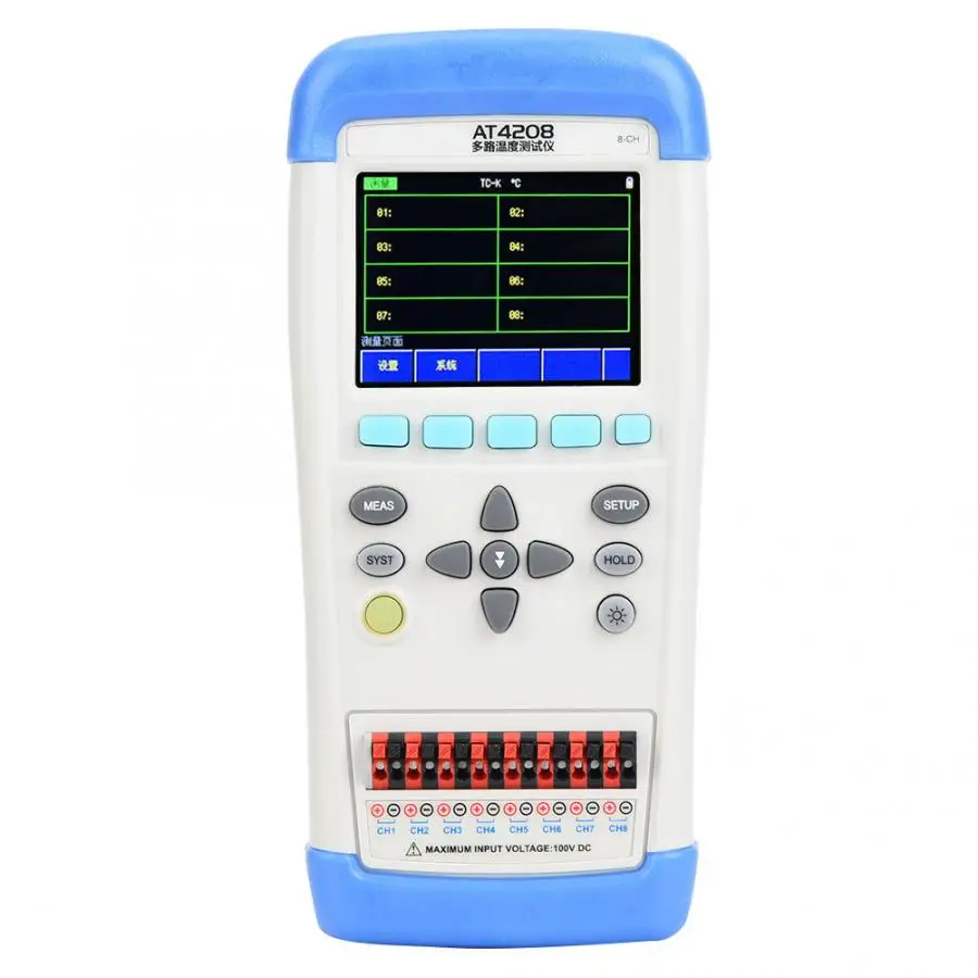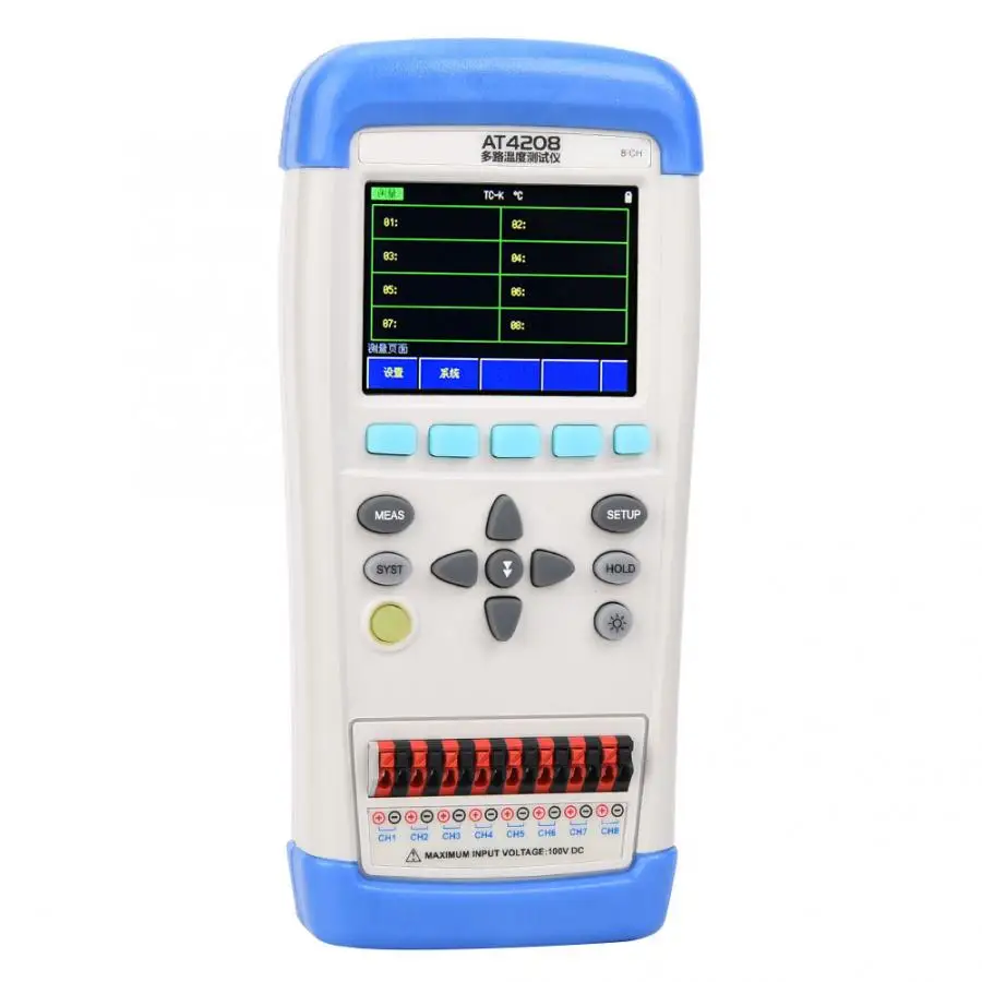 1. AT4208 Ручной Многоканальный измеритель температуры принимает высокопроизводительный 32 бит ARM micro процессор, может собрать Многоканальные данные температуры одновременно.