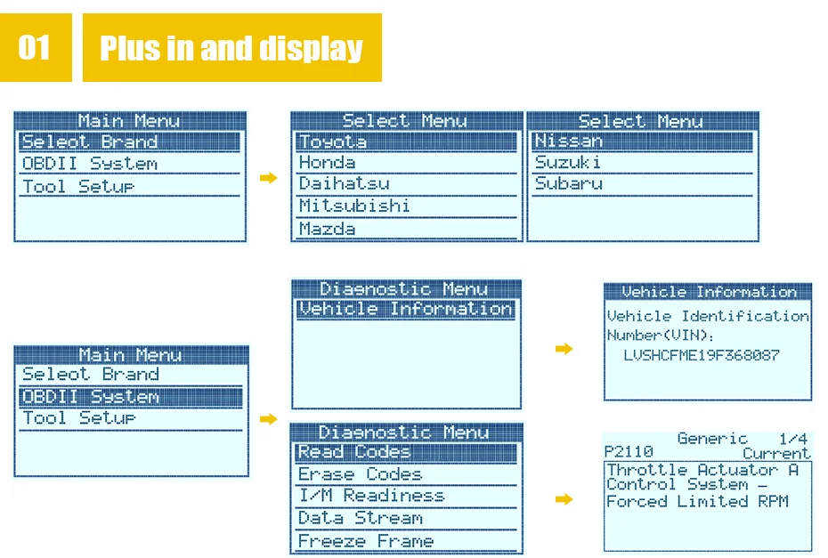 Функция JOBD: 1. Легко определяет причину проверки двигателя светильник (MIL) 2. Чтение и очистка кодов. 3. Быстрые испытания японских автомобилей (16pin): Для TOYOTA \ для HONDA \ для DAIHATSU \ для MITSUBISHI \ для MAZDA \ для NISSAN \ для SUZUKI \ для SUBARU. Функции OBDII и EOBD: Читает и очищает коды неисправностей: общие коды, ожидаемые коды, конкретные коды производителя. Считывает прямую передачу данных Просмотр данных рамки замораживания Отображает состояние готовности I/M Функция отзывы Получение информации о транспортном средстве (VIN,CIN и CVN) Поддержка обновления онлайн