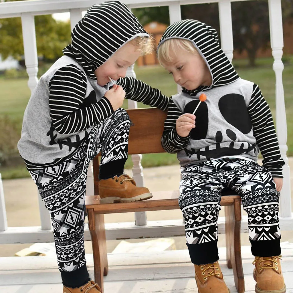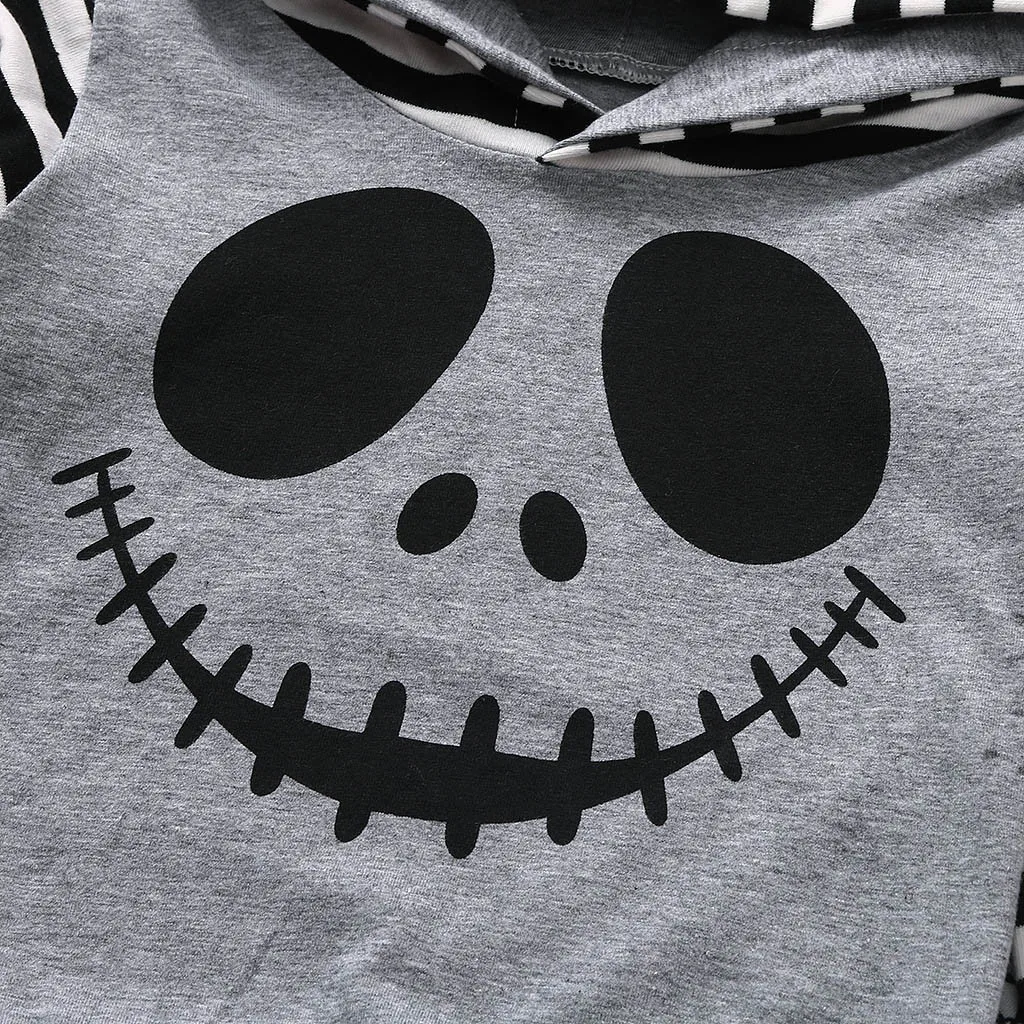 Toddler Baby Halloween Cartoon Skull&Striped Hoodie Tops+Geometry Pants Outfits