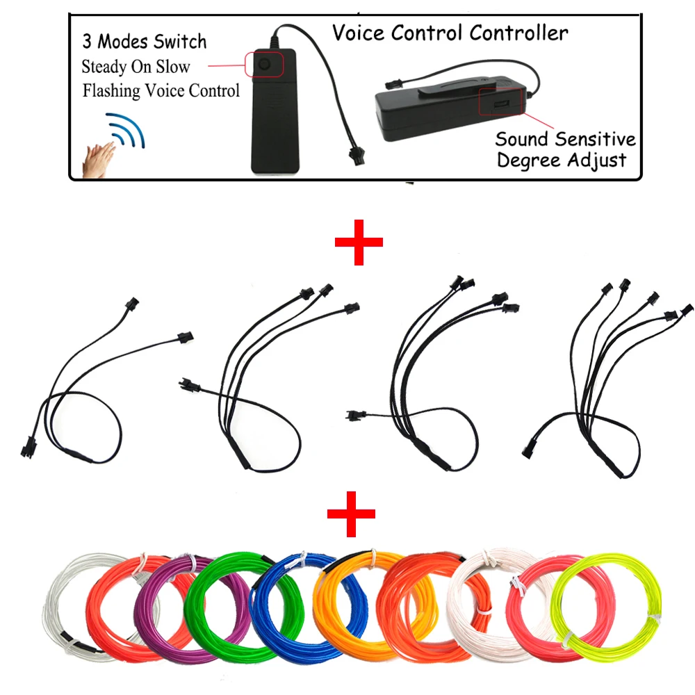 EL Wire неоновый свет наборы с речевой контроллер инвертор батарейный 5 на 1 метр (3 фута) провод для вечеринок Blacklight Run, DIY украшения