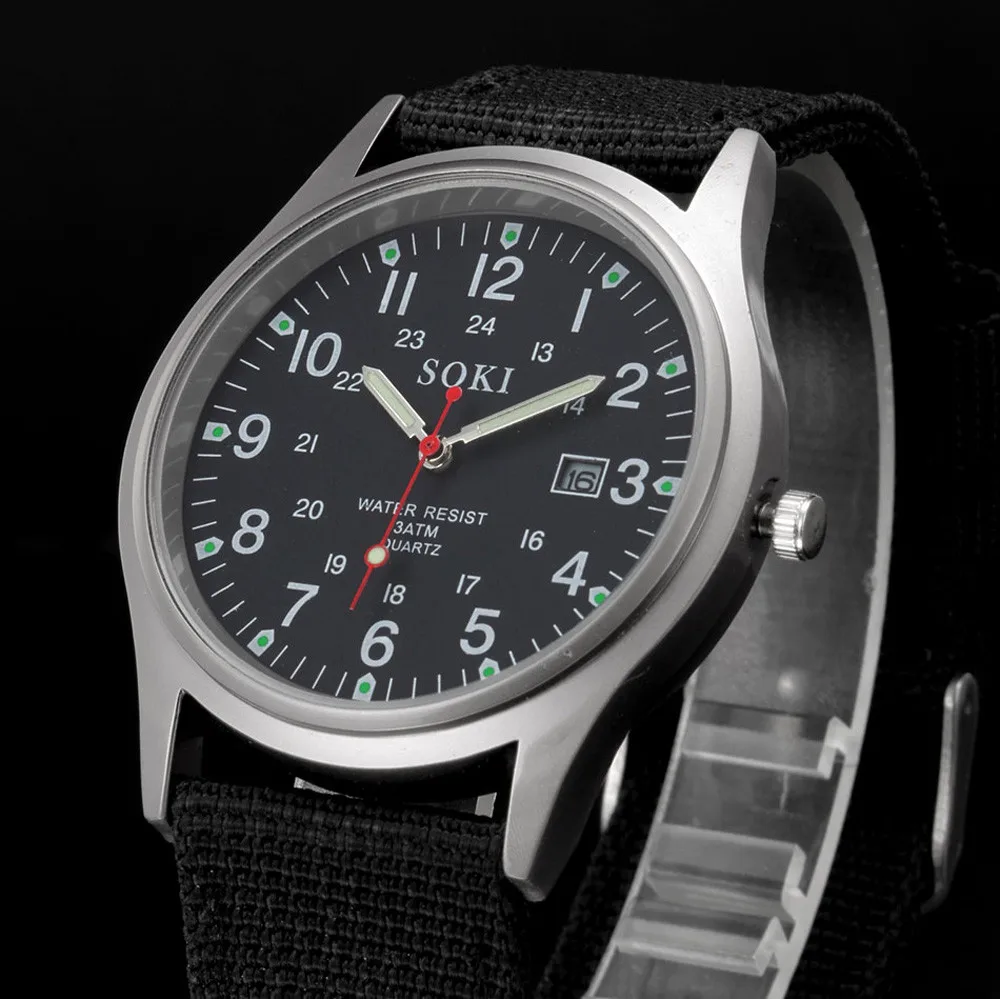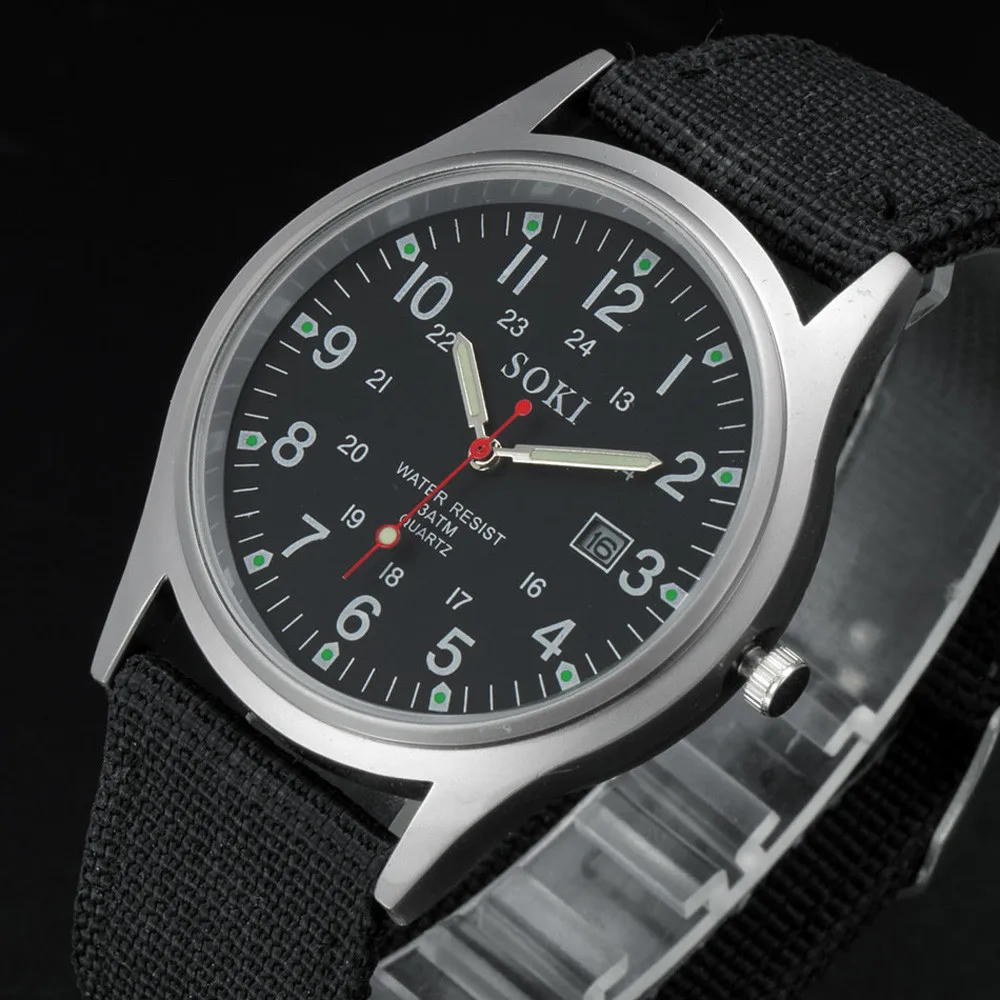 Новый тренд роскошные часы Военные мужские Дата холщовый ремешок из нержавеющей стали Спортивные кварцевые наручные часы relogio masculino мужские часы