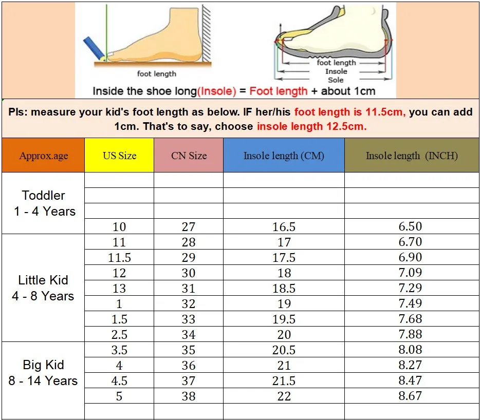 2..Что касается размера, Измерьте длину стопы ребенка в см или дюймах + 1 см или 0,03937 дюймаChВыберите соответствующий американский размер, спасибо.