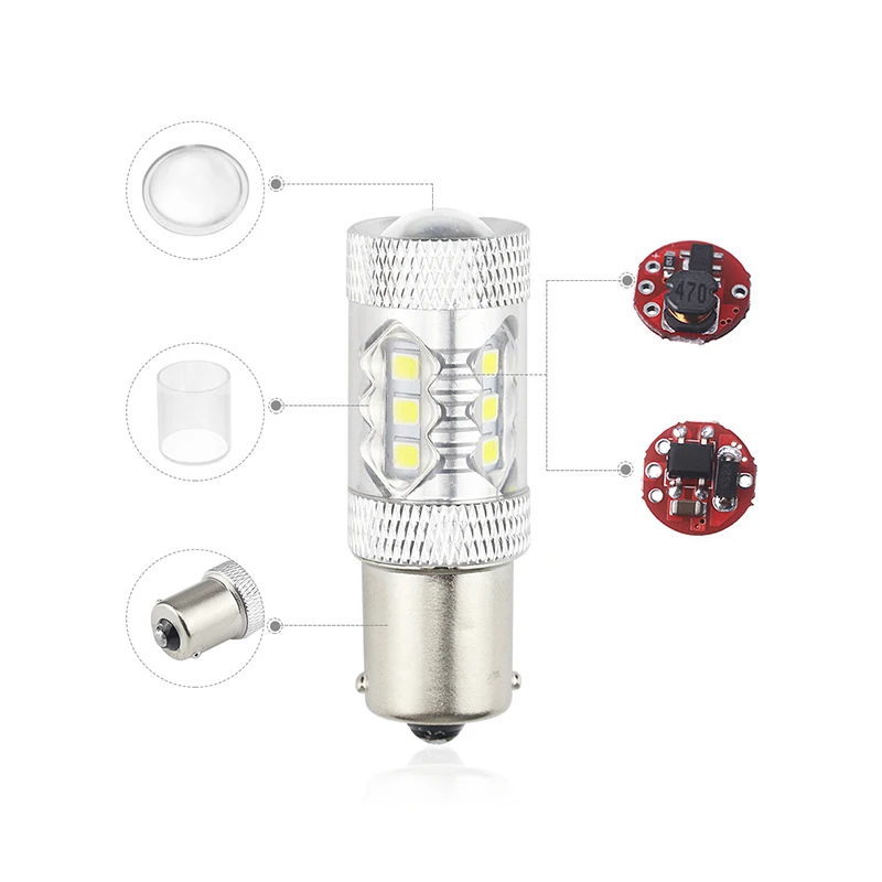 Description: 100% brand new and high quality High luminous efficiency, super bright. New LED technology reduces power consumption from 40% to 80%. For replacement of Signal, Turn, Parking, Tail, DRL , etc Excellent heat dissipation, low power consumption and long service life. Fast on/ off response time. Environmentally friendly, no light pollution and energy saving. Easy to install and use. There is a convex lens on top, with the function of focusing lights. With metal shell, makes the bulb work under low heat. LED: Chip model: 3030 Number of chips: 16 Color: white Socket type: 1156 Voltage: 12V Power: 80W Color temperature: 6500K Luminous flux: 900LM Material: aluminum Size: 5.4 * 1.8 cm Weight: 16 grams Uses: reversing, steering, braking, DRL, Package Inlcuded: 1 x led reversing light