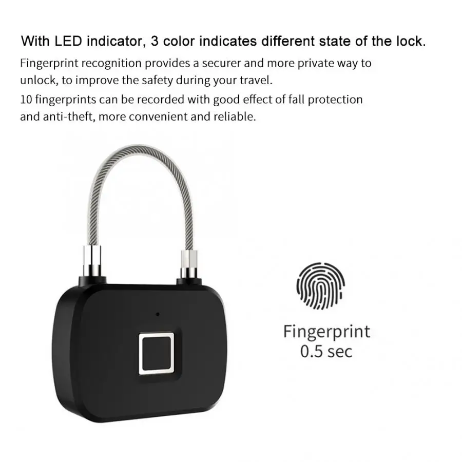 Портативный блокировка отпечатков пальцев умный БЕСКЛЮЧЕВОЙ Анти-Вор светодиодный замок для путешествий чемодан рюкзаки