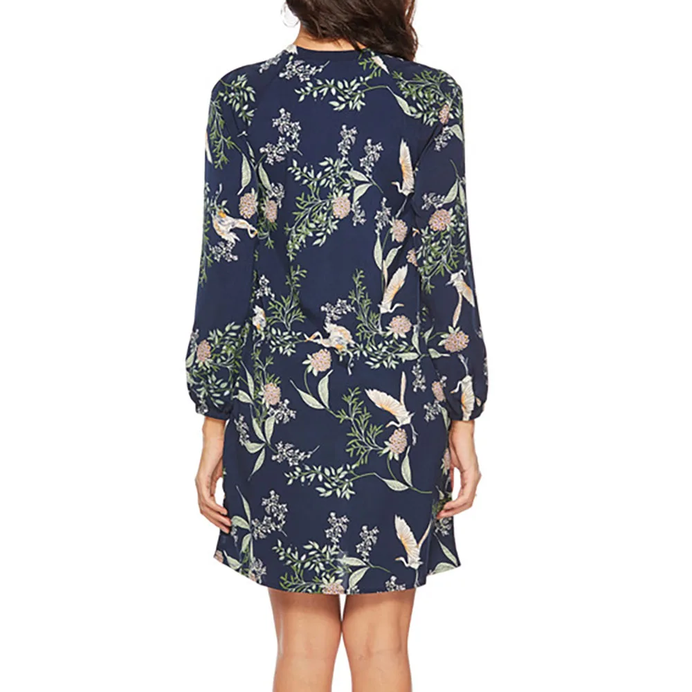 Модные шифоновые женские платья с принтом, осеннее платье с длинным рукавом, Офисная Женская одежда, винтажное платье в стиле бохо, Vestidos