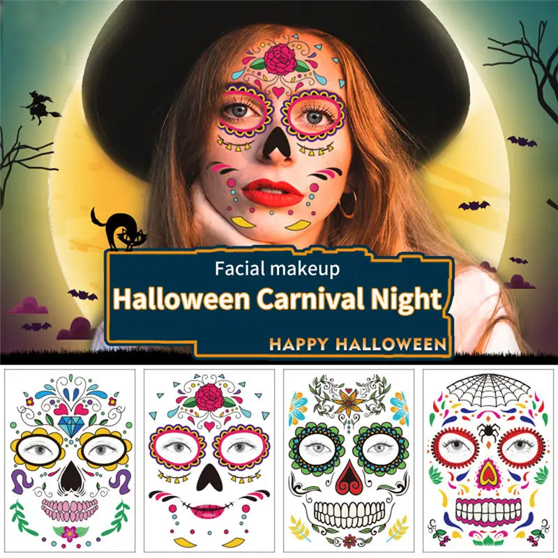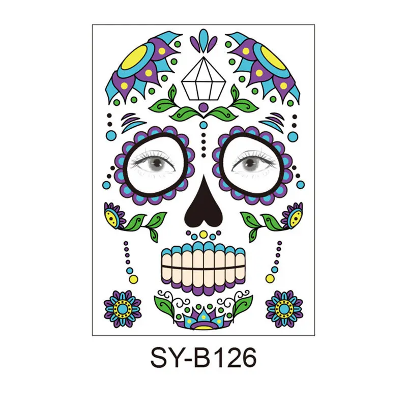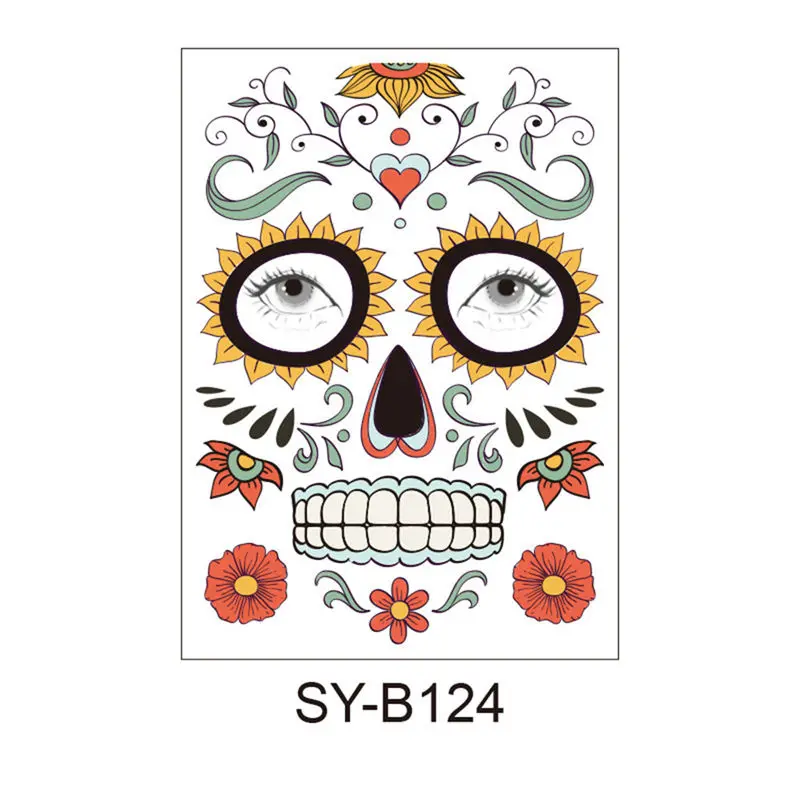 Хэллоуин временные лица искусство Водонепроницаемая маска Сахар Череп татуировки красота стикер