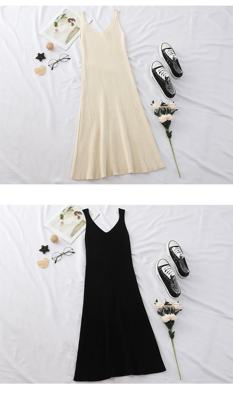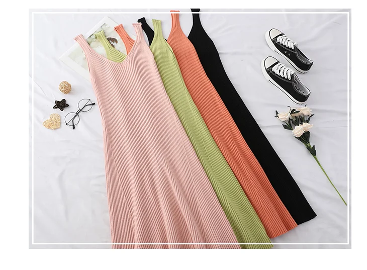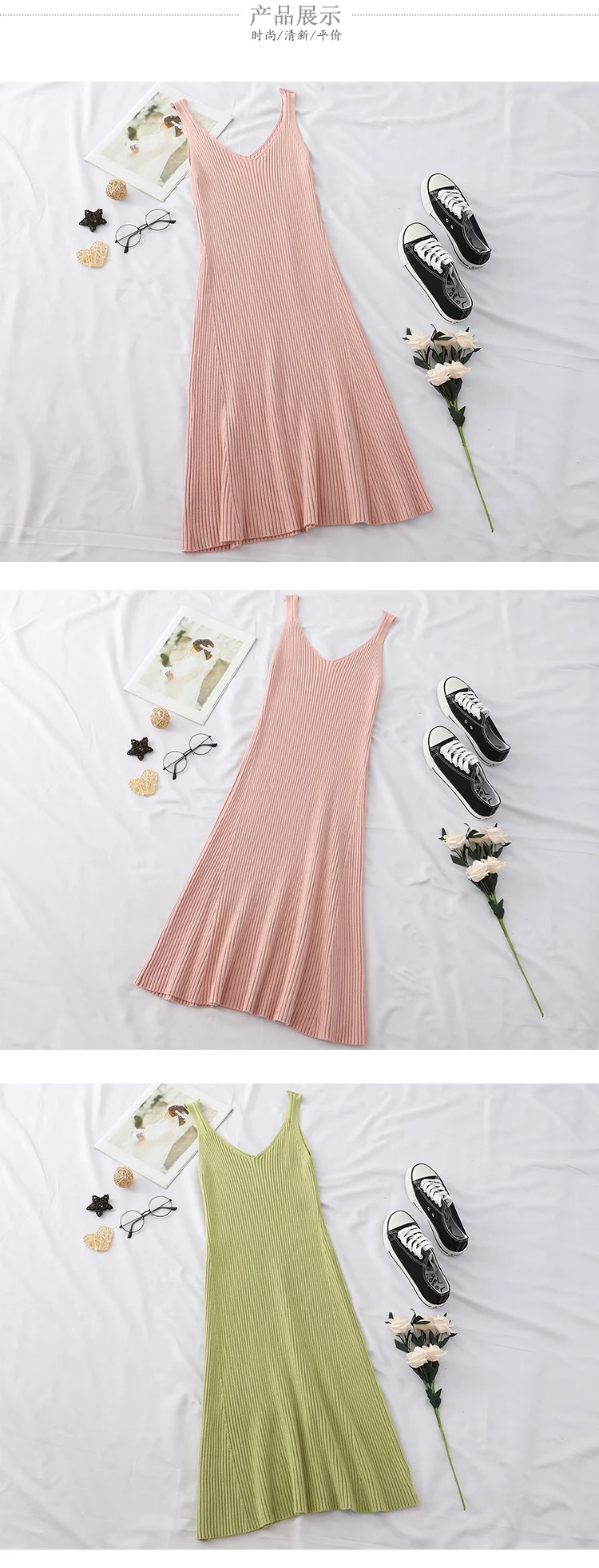 Элегантное трикотажное платье для женщин; Универсальная одежда в Корейском стиле.