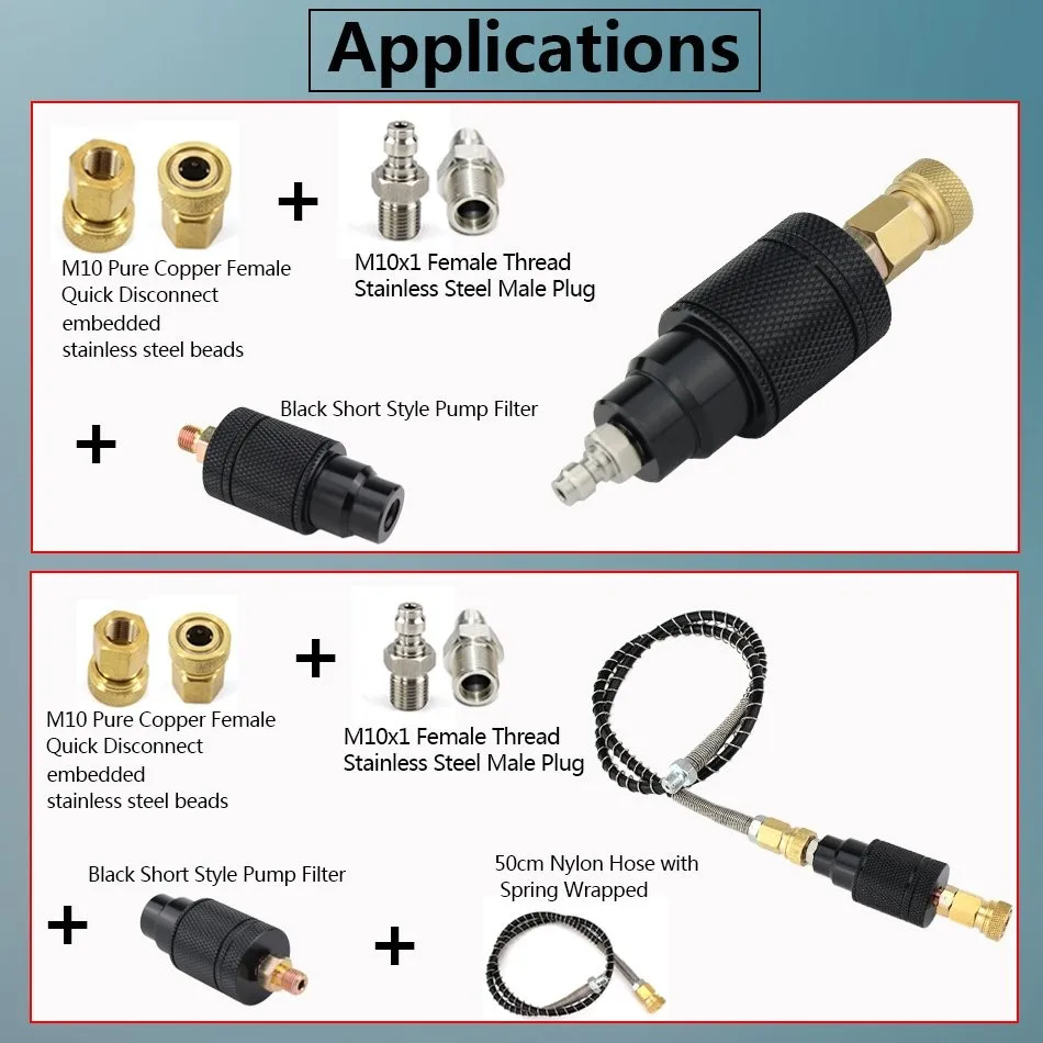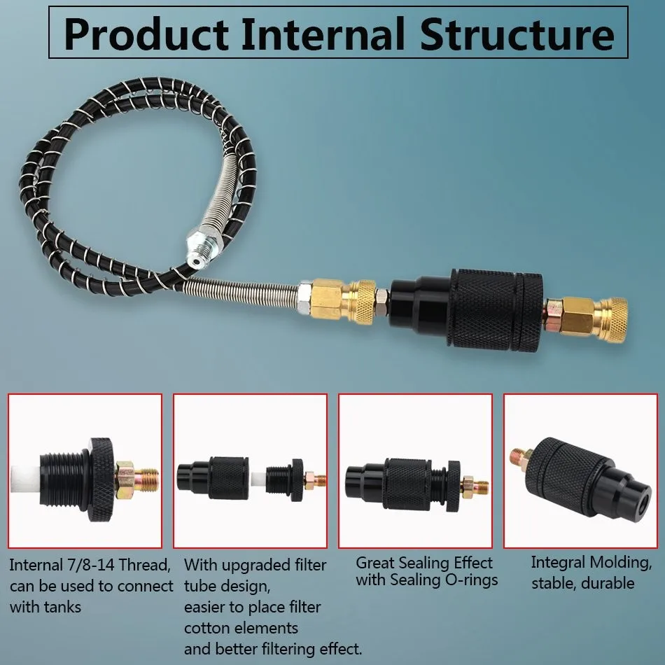 Высокое качество Алюминий водно-масляный сепаратор Добавьте его в насос или воздушный компрессор для фильтрации масла, влаги или примесей Давление: 30 МПа/300 бар/4500psi Нитки: M10 x 1 male + M10 x 1 female Дополнительные 19 шт. фильтрующих элементов включены Бесплатные уплотнительные кольца M10 PTFE и другие запасные уплотнительные кольца будут отправлены вам также Простой и удобный в использовании Идеальные и практичные запасные части для ручного воздушного насоса, PCP, воздушного компрессора и т. Д. Только сепаратор для воды и масла, сепаратор для воды с быстрым разъемом или сепаратор для воды и масла с быстрым разъемом и шлангом доступны для выбора