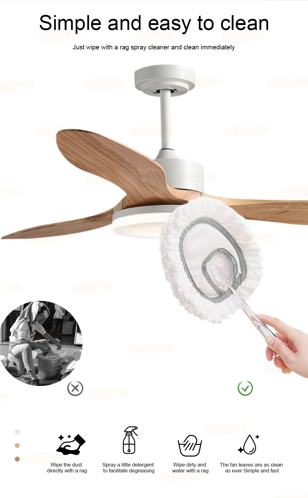 Протрите пыль непосредственно тряпкой Распылите небольшое моющее средство, чтобы облегчить обезжиривание Протрите тряпкой грязную воду Листья вентилятора такие же чистые, как всегда Простой и быстрый