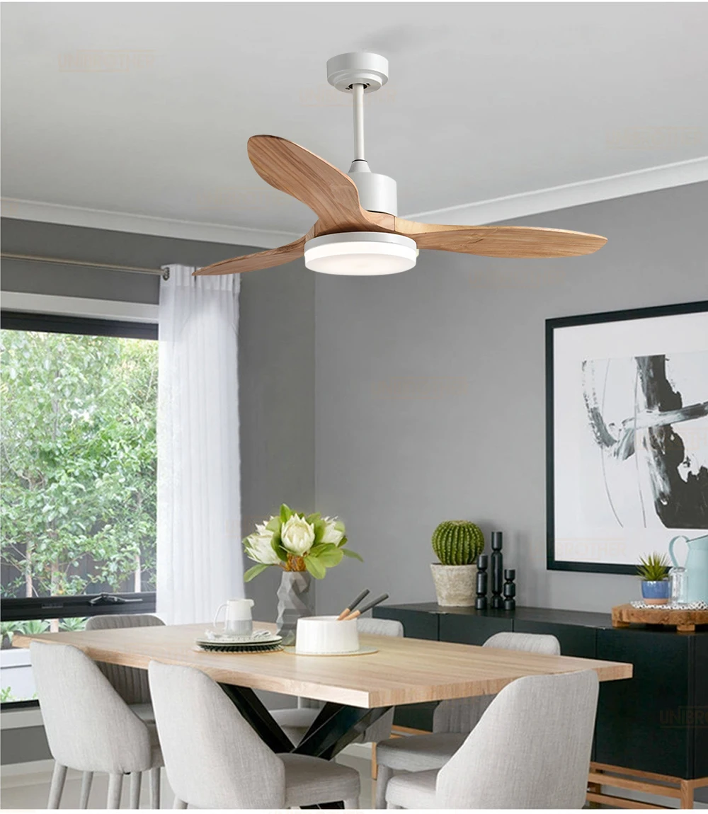 48 дюймов светодиодный бесшумный потолочный вентилятор деревянный лист потолочный светильник ресторан спальня дистанционный пульт затемнения дома декоративные 220V вентилятор светодиодные лампы