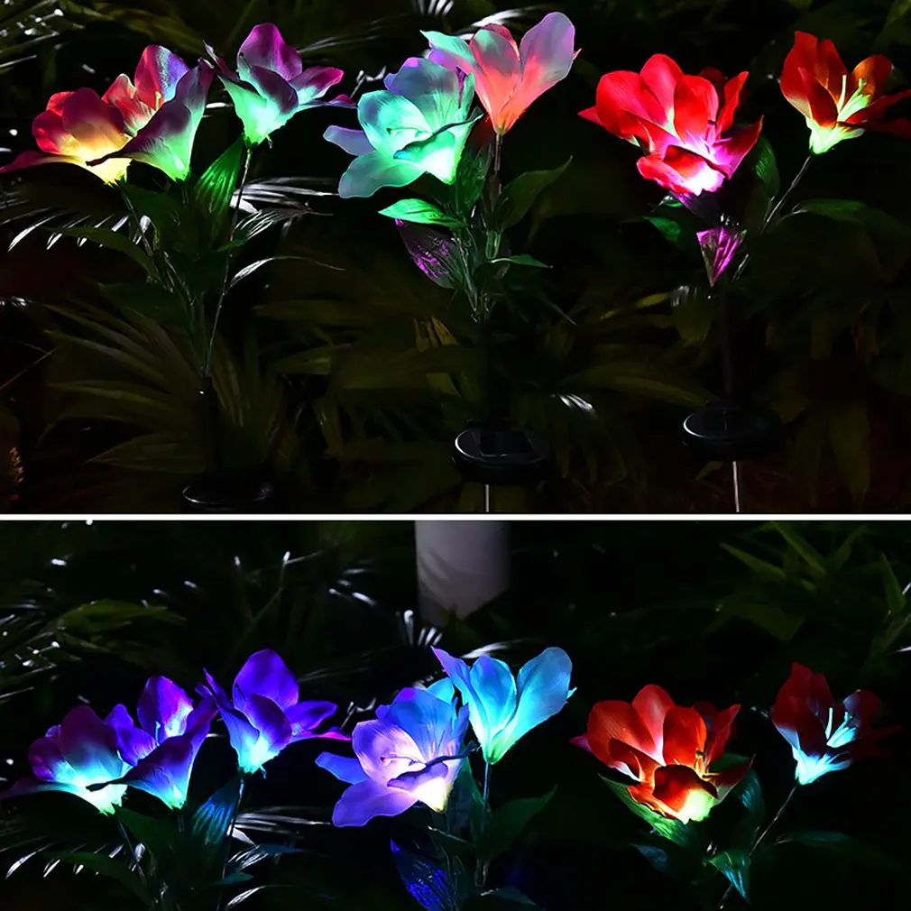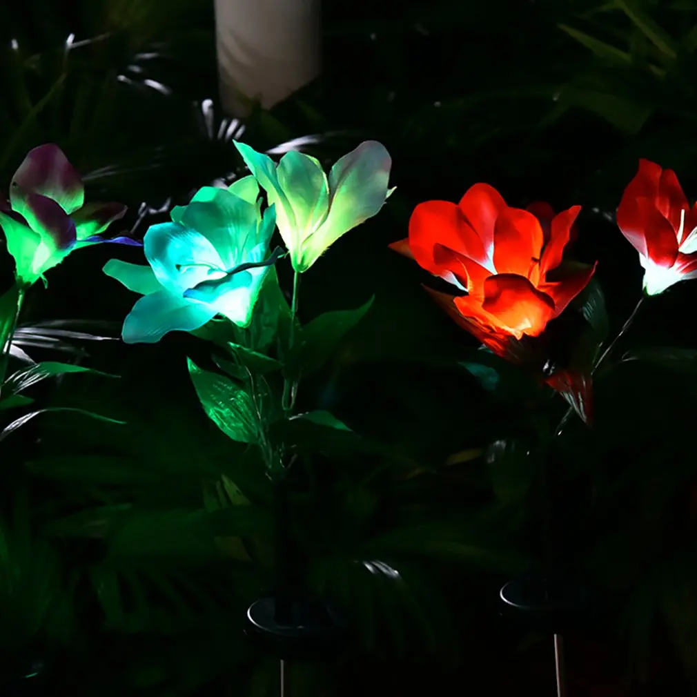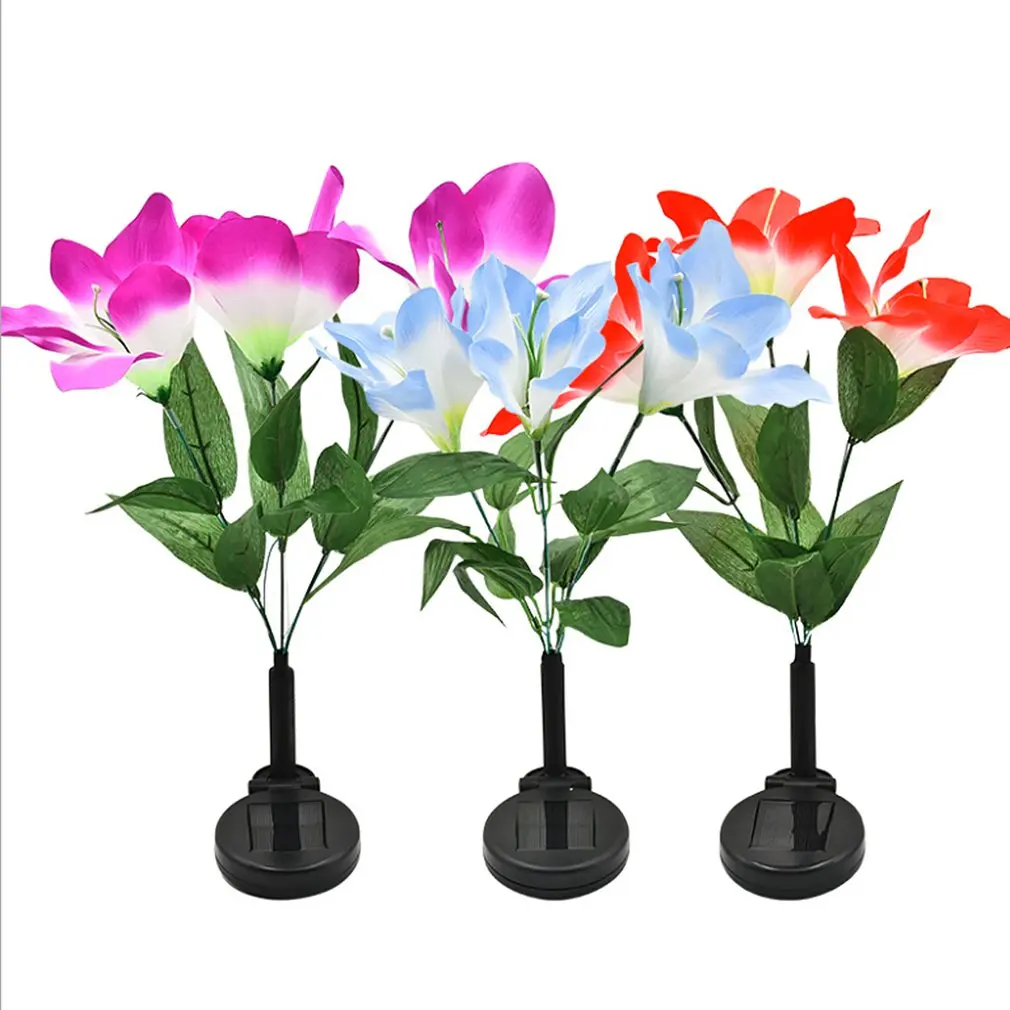 Цветочные огоньки с лилиями из солнечного сада выглядят реалистично ночью и днем.