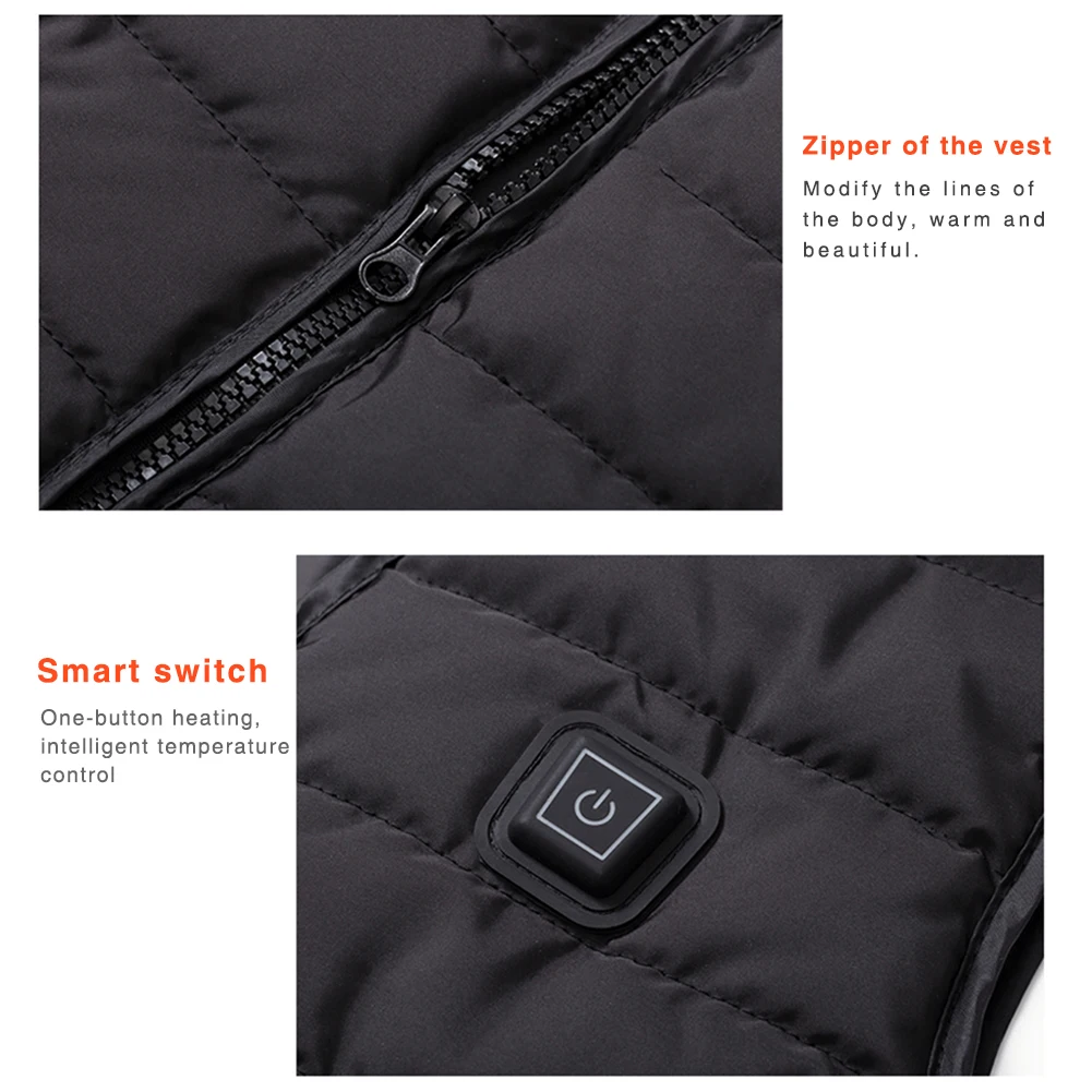 - Long press the chest temperature control switch for 3 seconds, start to warm up and then adjust to the medium temperature heat when you need to always connect the mobile power.