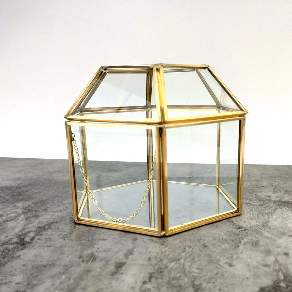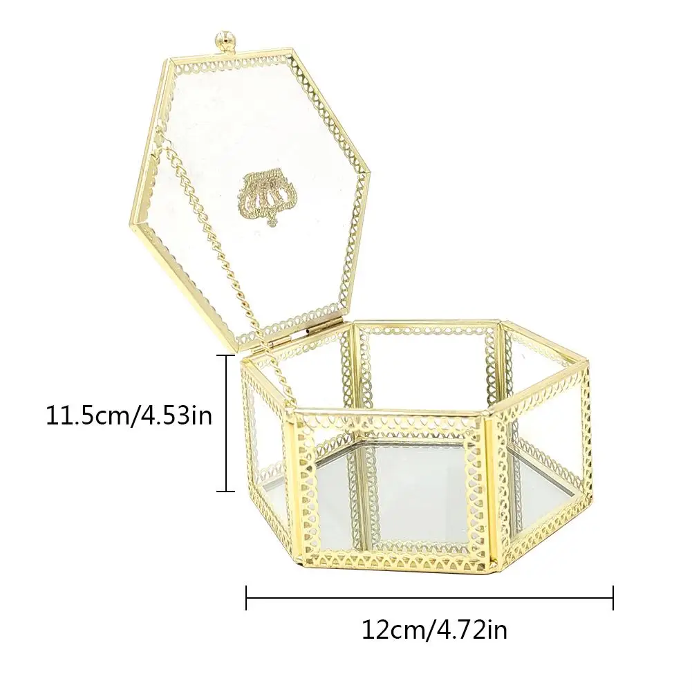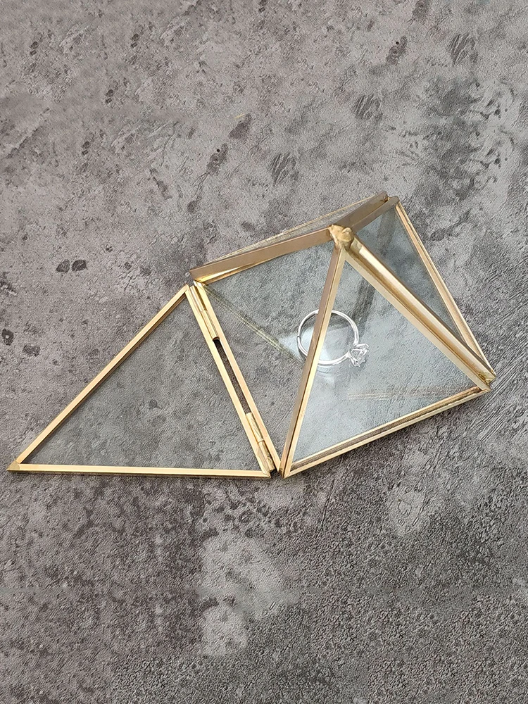 Скандинавские геометрические Персонализированные Свадебные стеклянные коробки, стеклянные кольца на заказ, стеклянные ювелирные изделия, Пентагон, геометрические медные кольца, держатель
