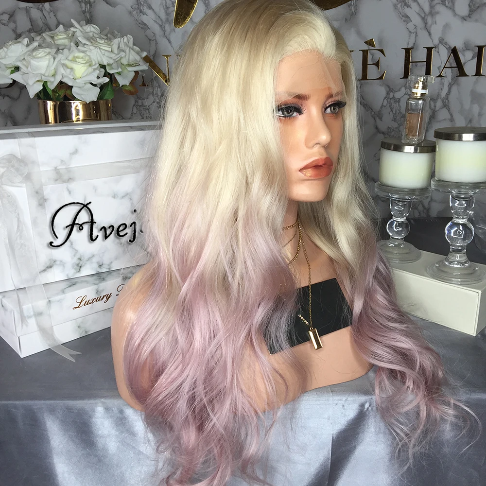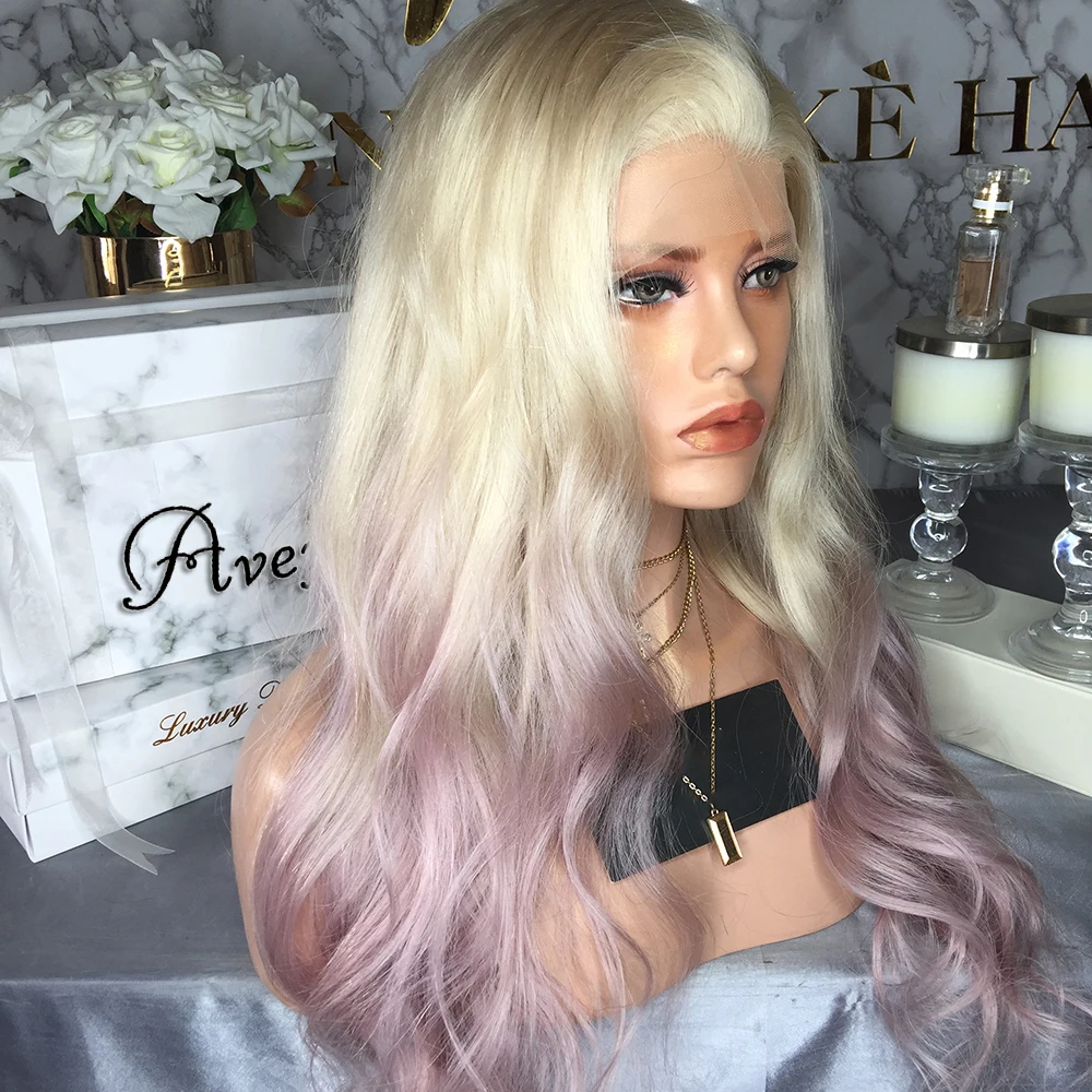 Прямые красочные парики из натуральных волос на фронтальной сетке
