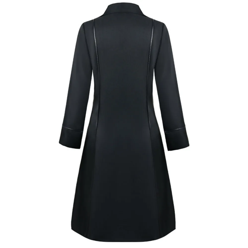 Осеннее элегантное платье-блейзер для женщин, весеннее офисное женское однотонное черное приталенное ТРАПЕЦИЕВИДНОЕ двубортное платье OL, ретро вечернее платье черного цвета