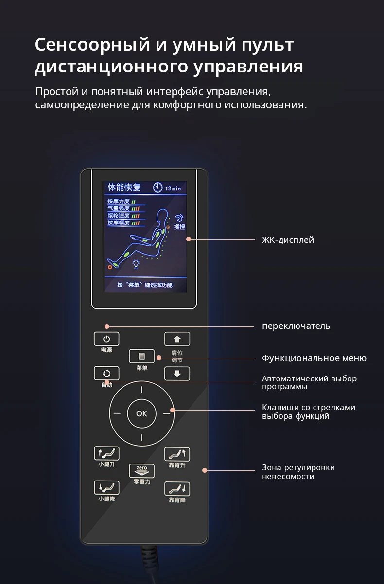 Обнаружение формы тела, массаж, бионический массаж AI, аудио Bluetooth.