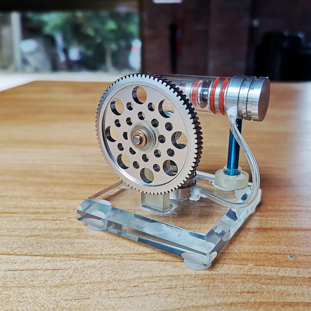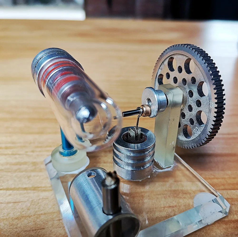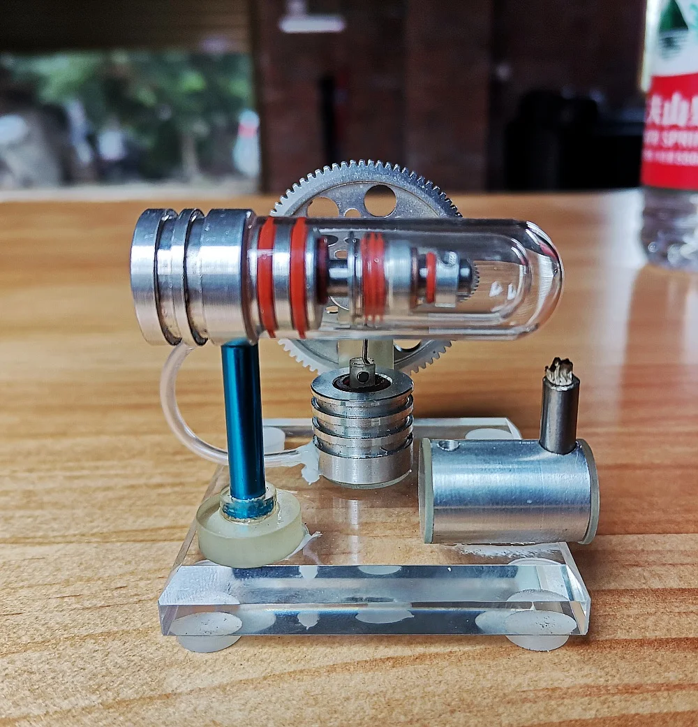Это небольшая Модель двигателя Стирлинга. Использование принципа теплового расширения и сжатия газа, гениальная механическая конструкция Управляемый внешним источником тепла, может быть выполнена непрерывная работа. Кварцевое стекло используется, поэтому нет необходимости беспокоиться о поломке стекла. Спирт выше 95% должен использоваться для топлива