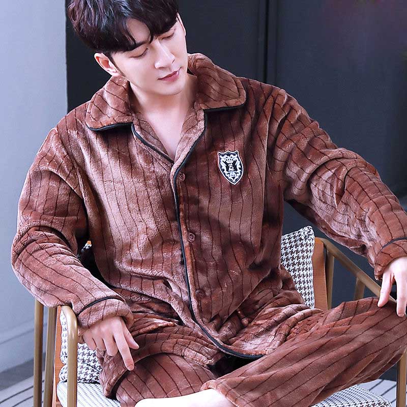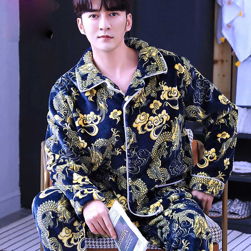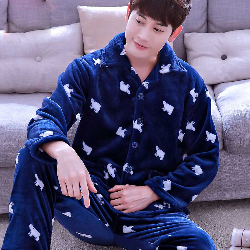 Коралловый флис, мужской пижамный комплект, Осень-зима, мягкая плотная Фланелевая пижама с мультяшным принтом, 2 шт./компл., топы + теплые штаны, домашняя одежда