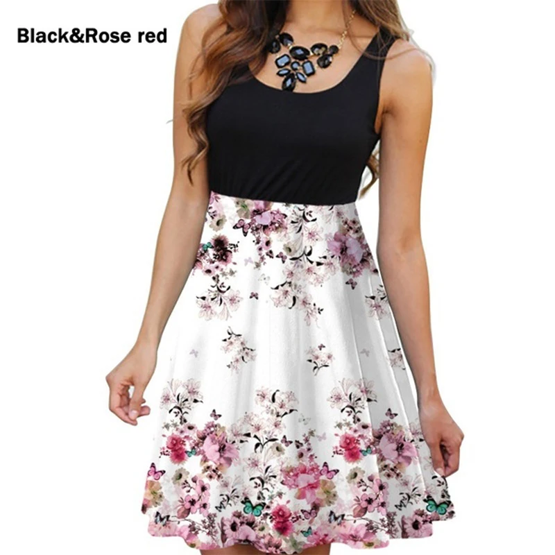 Размера плюс xxxxxl xxxxl женское платье с круглым вырезом, Повседневное платье без рукавов, облегающие платья с цветочным принтом