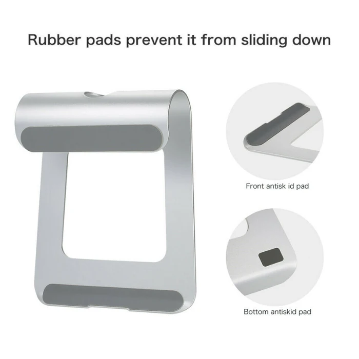3. Противоскользящие резиновые прокладки надежно удерживают подставку на столе и предотвращают скольжение ноутбука с подставки.
