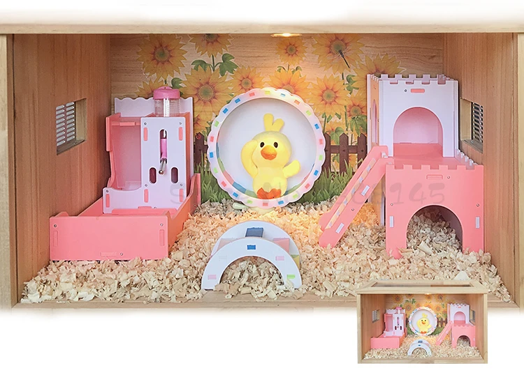 Клетка для хомяков, очень большая вилла для малышей, золотой Шелковый медведь, однослойная двойная Прозрачная основа, принадлежности, игрушки