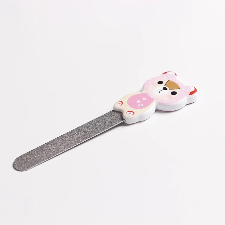 Название продукта: мультяшная пилочка для ногтей Материал: нержавеющая сталь, пластик Длина: 10,3 см Вес: 8,5 г Особенности: шлифовка неровных ногтей Подходит для: любителей нейл-арта Советы: протрите поверхность после использования Мультяшная ручка, маленькая и удобная Двухстороннее матовое зерно для долговечности