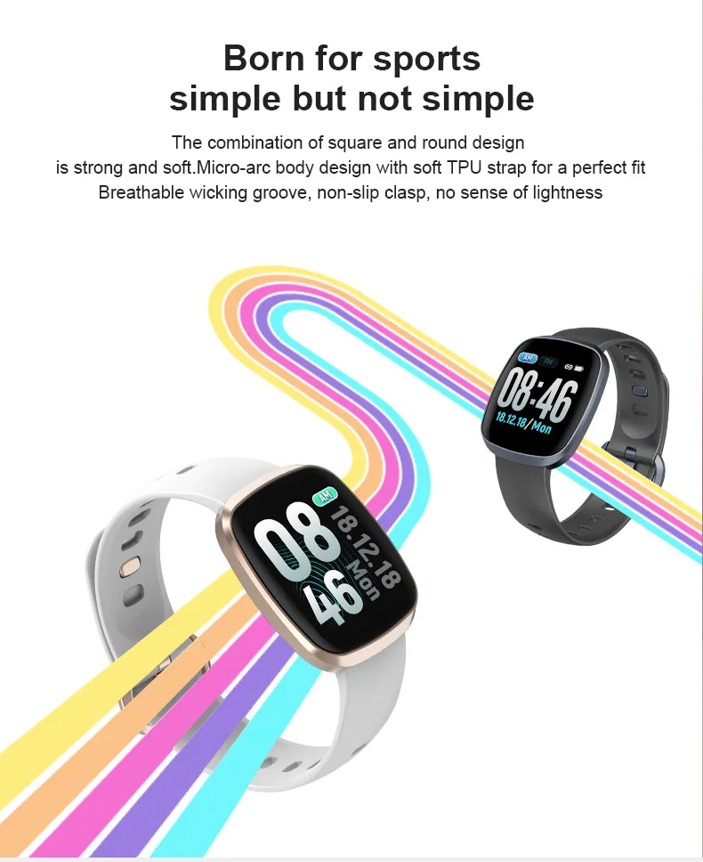 Сочетание квадратного и круглого дизайна является прочным и мягким. Дизайн корпуса Micro-arc с мягким ремешком из ТПУ для идеальной посадки