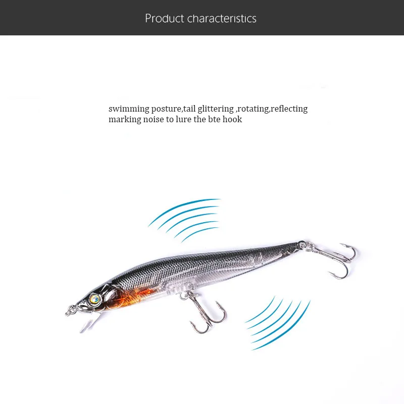 Особенности: 1. 3D голографическая приманка для рыб, три острых крючка, плоское растягивающееся кольцо. 2. Плавающая, гибкая и управляемая. 3. Цвет краски внутри соответствует действительности. Устойчивость к износу и коррозии, подходит для пресной и морской воды. 4. Научная замена живой приманке, похожа на настоящую.