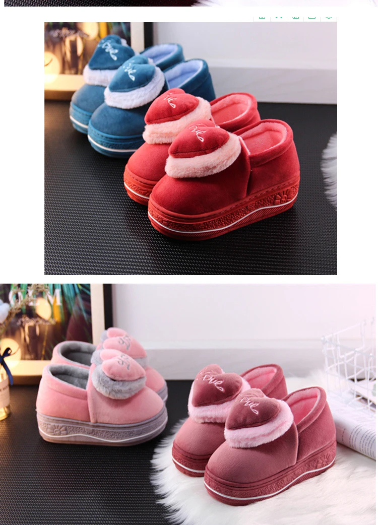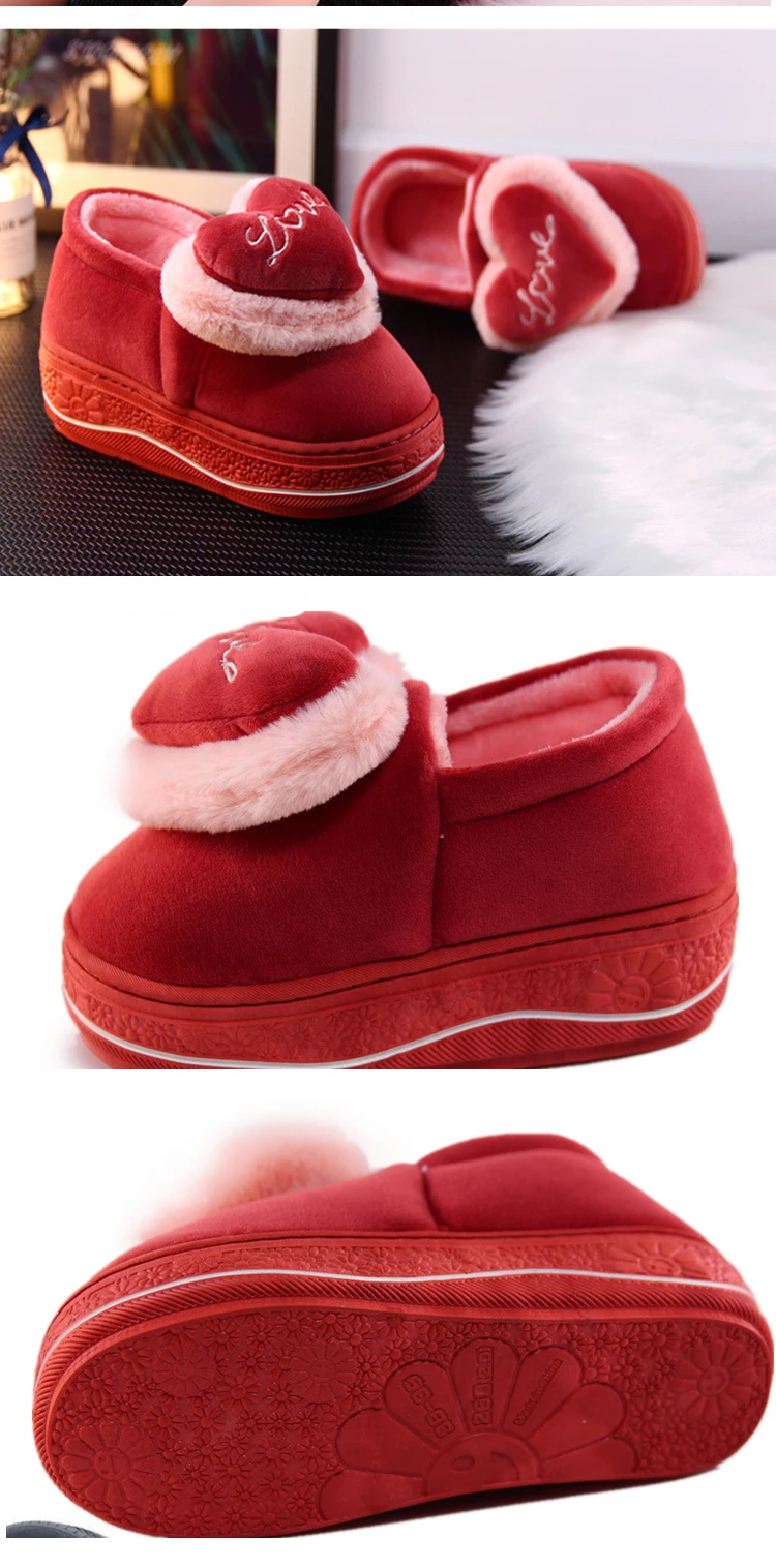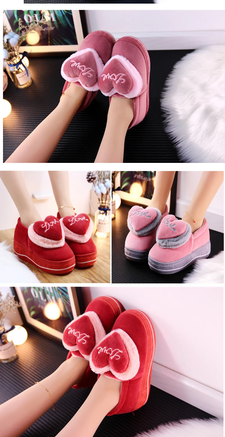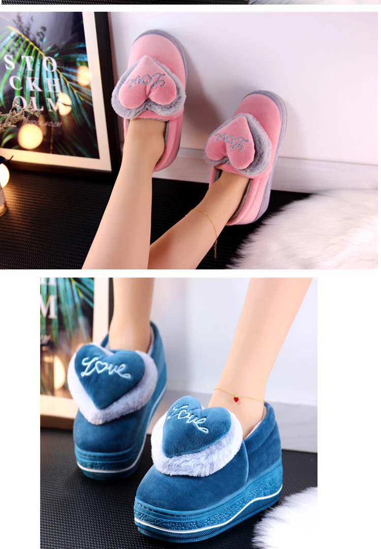 Тапочки на скрытом каблуке; зимняя обувь с хлопковой подкладкой; женские милые плюшевые тапочки на толстой подошве с сумочкой в виде сердца; нескользящие домашние тапочки на высоком каблуке; сохраняющие тепло