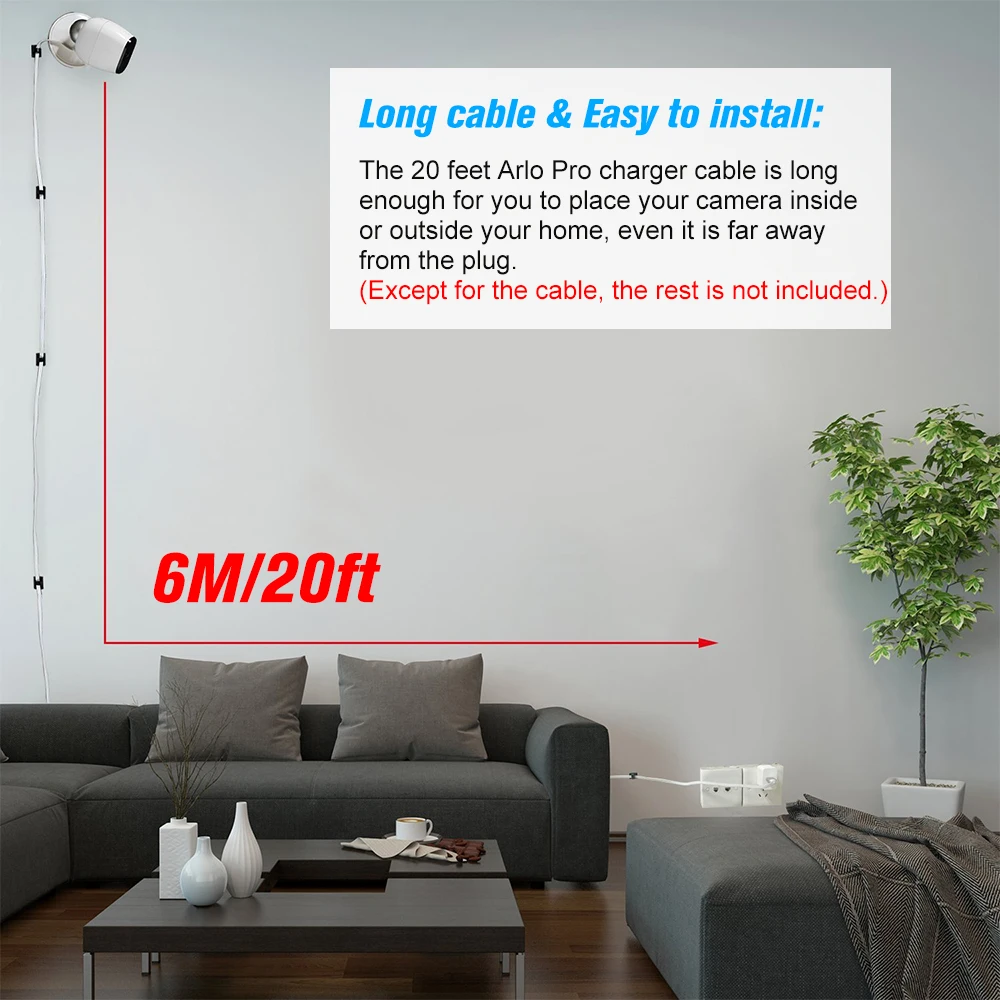 1*6,6 фута длина кабеля питания для Arlo Pro (Без 3,0 штепсельной вилки)
