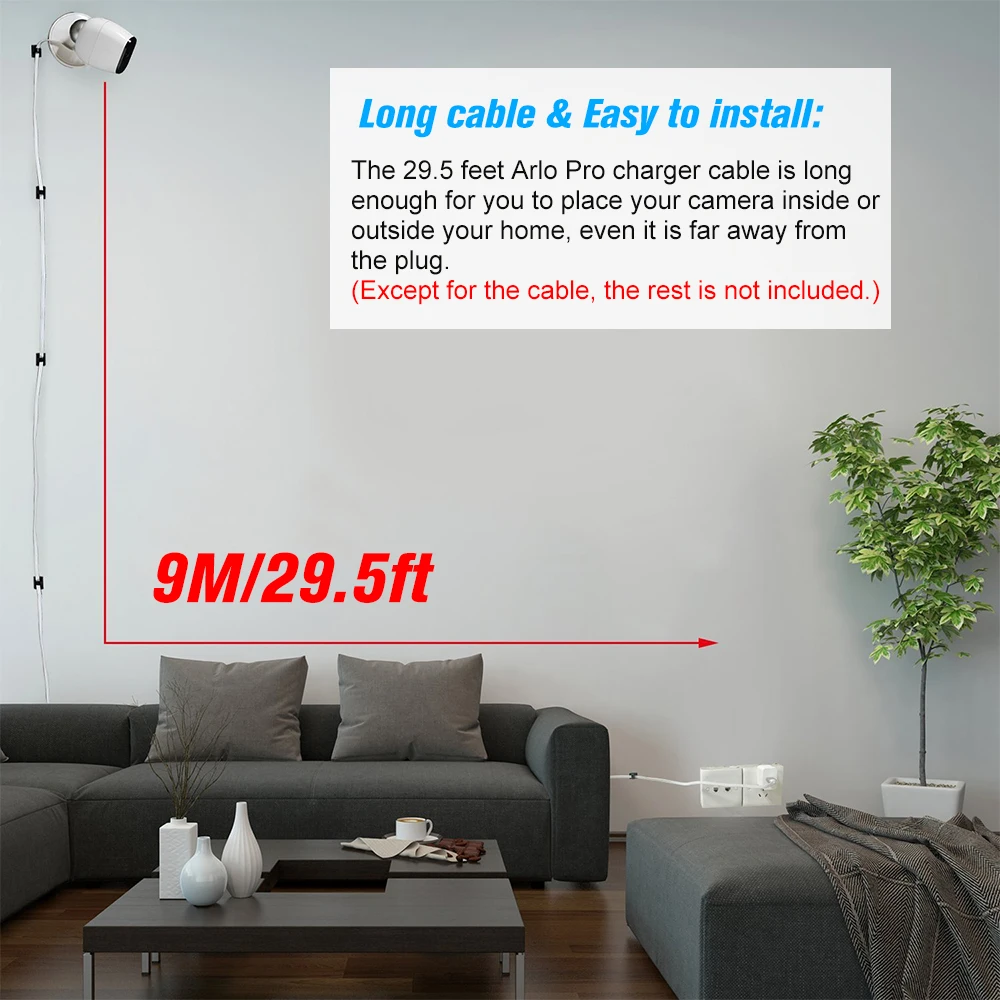 * Длинный кабель и простота установки: 6,6 Футов Arlo Pro Кабель зарядного устройства достаточно длинный, чтобы вы могли разместить камеру внутри или снаружи вашего дома. Вам просто нужно открыть заднюю часть защитной крышки micro USB и вставить usb-кабель в отверстие на Arlo Pro.