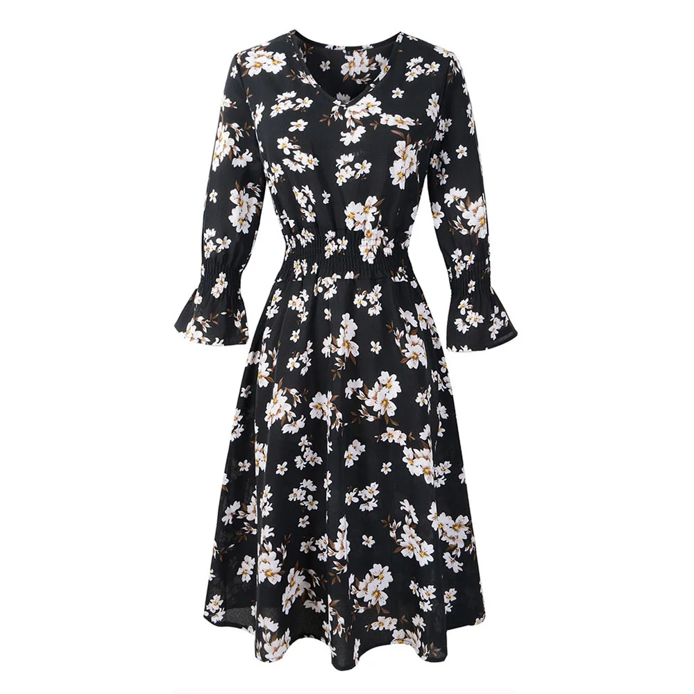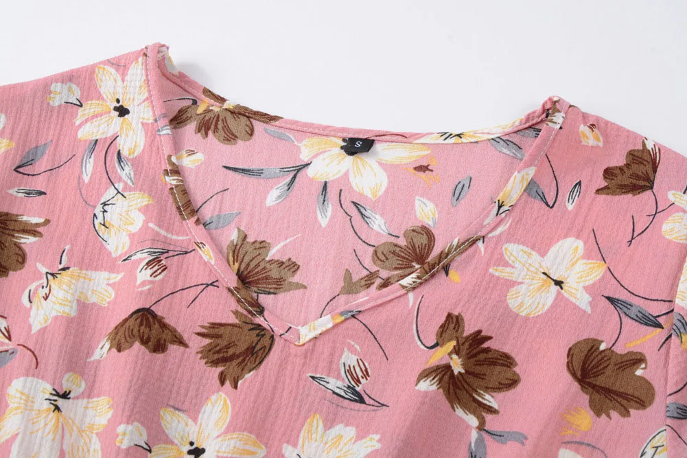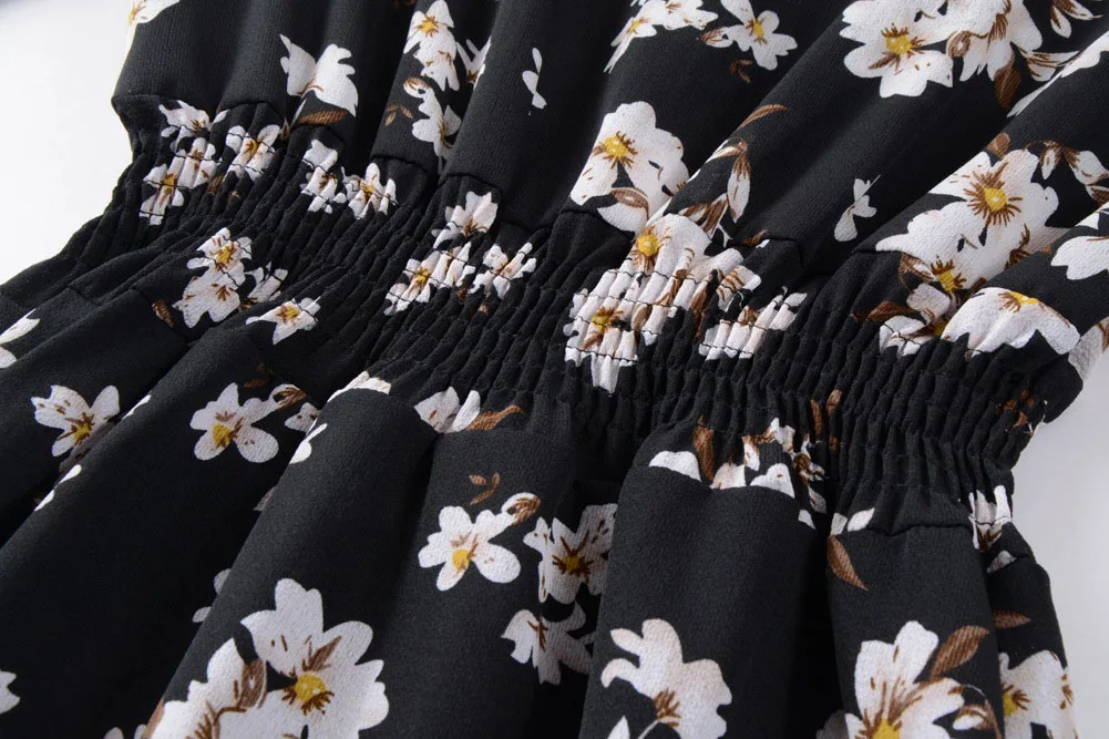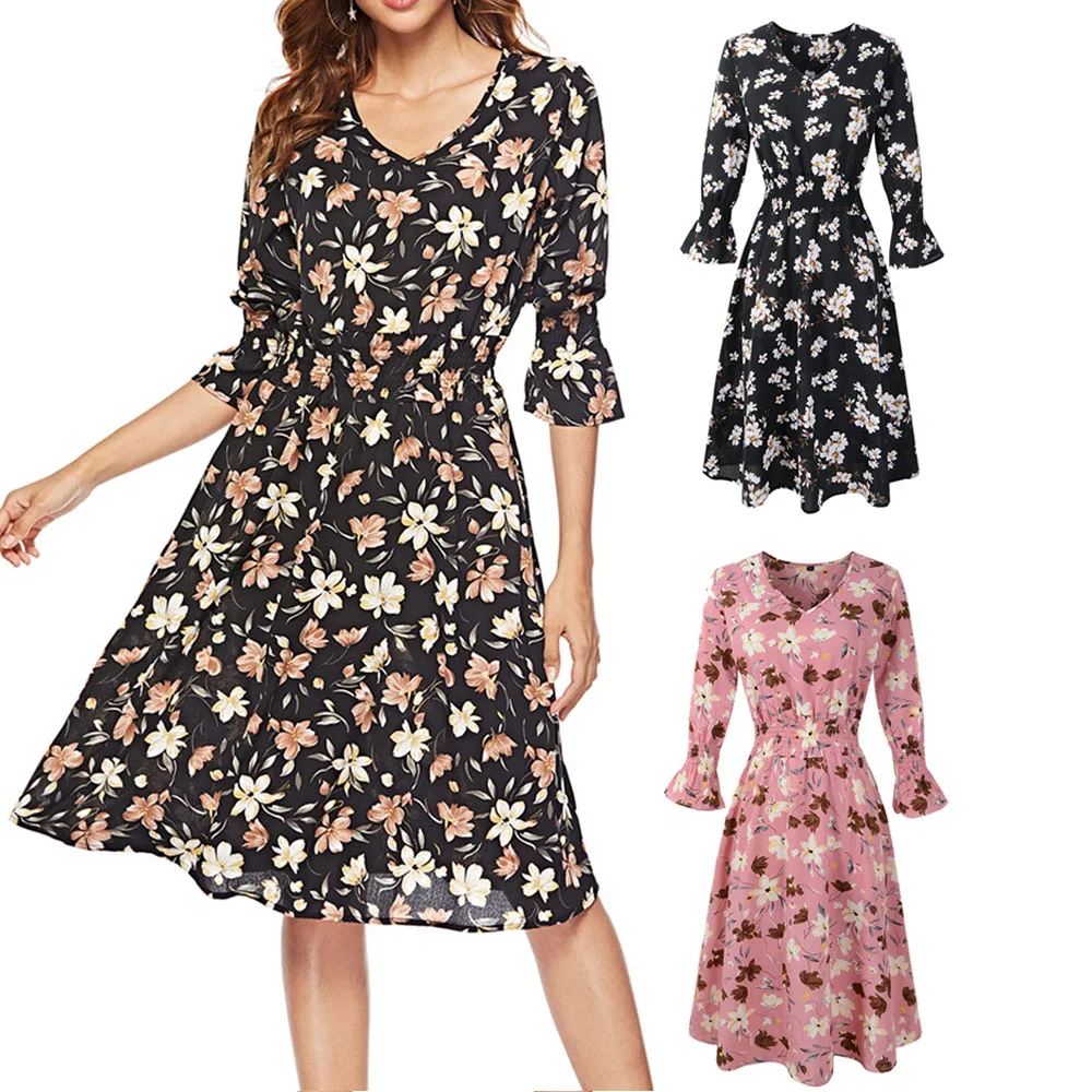 Summer Dress V Neck Print Flower Chiffon Vintage Party Women Dress Sexy Office Lady Elegant Clothing Vesidos Ropa Mujer sukienki