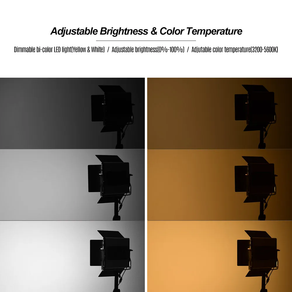 Регулируемый: с 2 ручками управления для регулировки яркости (0%-100%) и цветовой температуры (3200K-5600K), может удовлетворить ваши различные потребности в эффектах освещения.