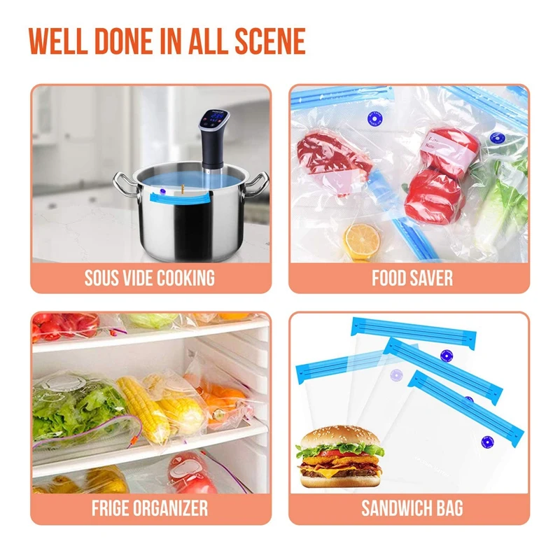 Многоразовый Вакуумный Герметичный пакет не содержит BPA, FDA одобренный безвредный материал, Морозильник Безопасный и безопасный для готовки, который может быть применен в любой сцене, Например, для хранения пищи/морозильной камеры или приготовления пищи sous vide. насос достаточно маленький, чтобы легко хранить и повторно использовать снова без необходимости дорогой вакуумной машины; каждый многоразовый мешок sous vide может быть многоразовый более чем в 10 раз.