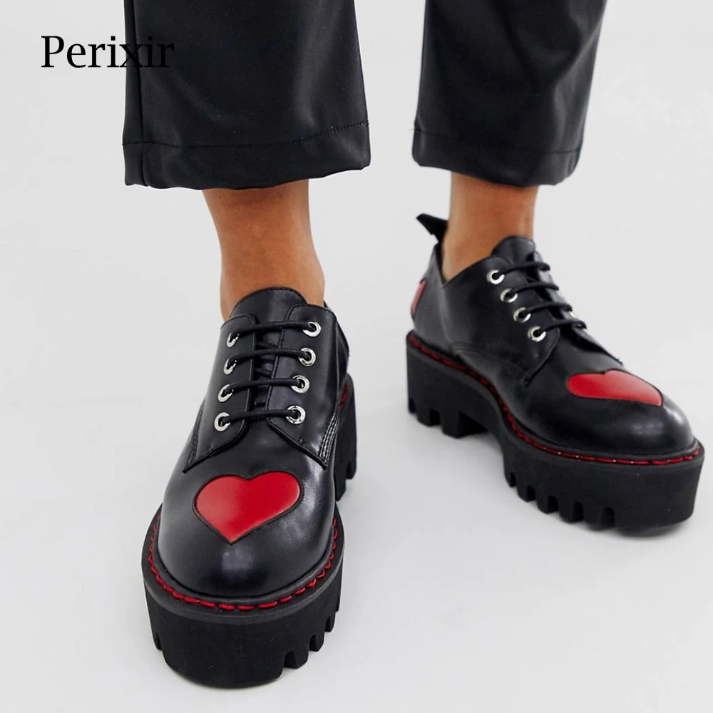 Perixir женские кожаные ботильоны на плоской подошве, со шнуровкой, украшенные красным сердечком, размеры 36-41