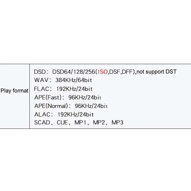 DSD: DSD64. .. DSD128. .. DSD256 (ISO Fondo... DFF) Нет apoyo DST