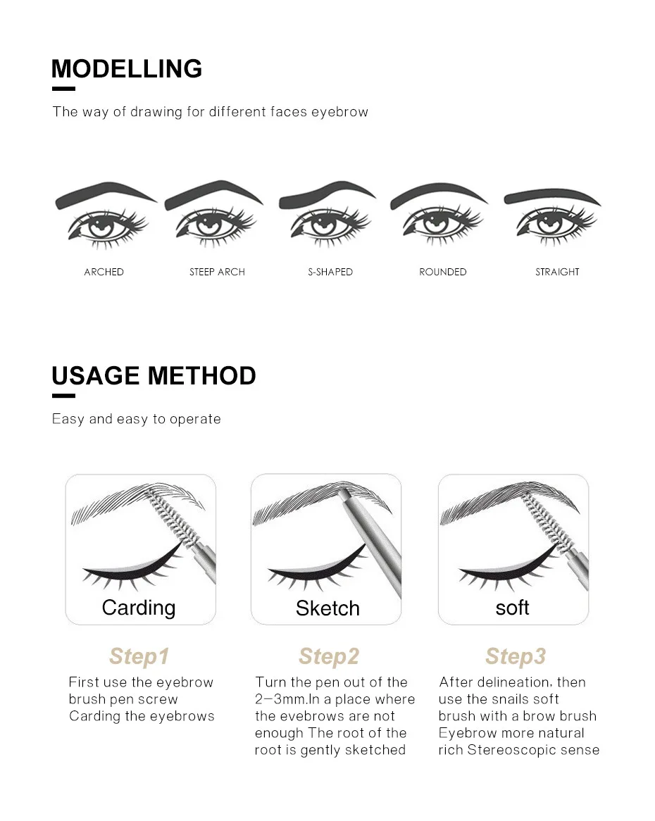 В комплект входит: 1 * двойной карандаш для бровей с кисточкой