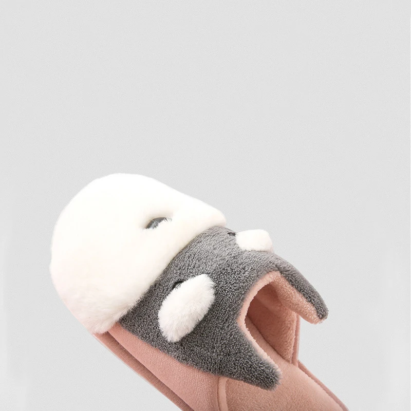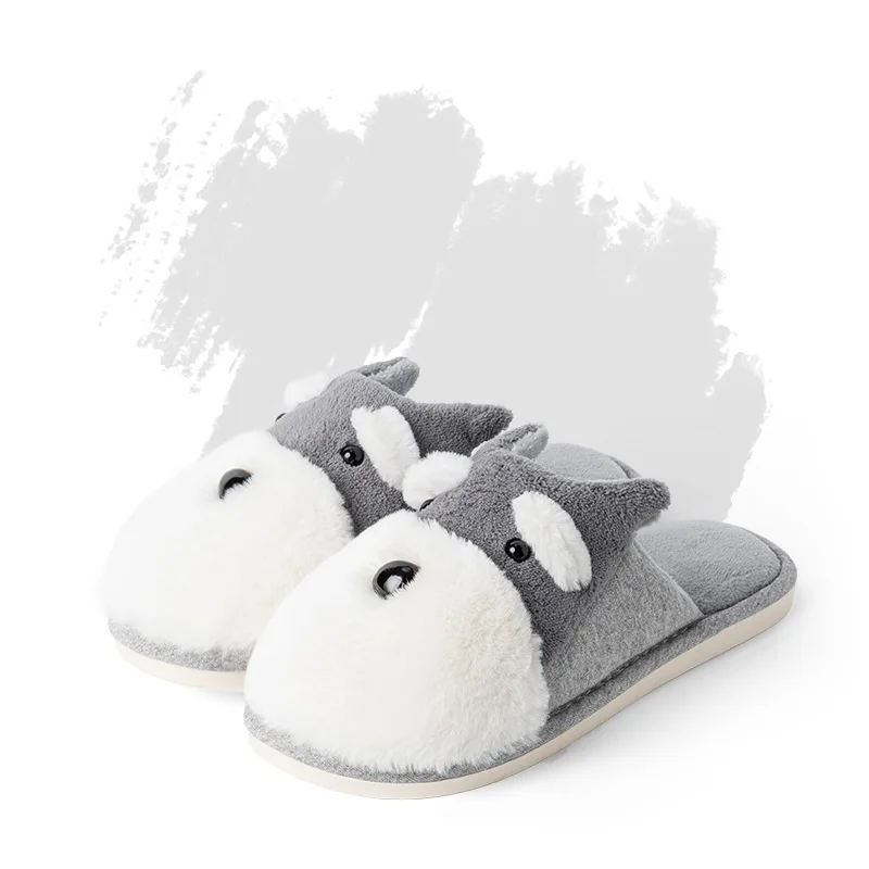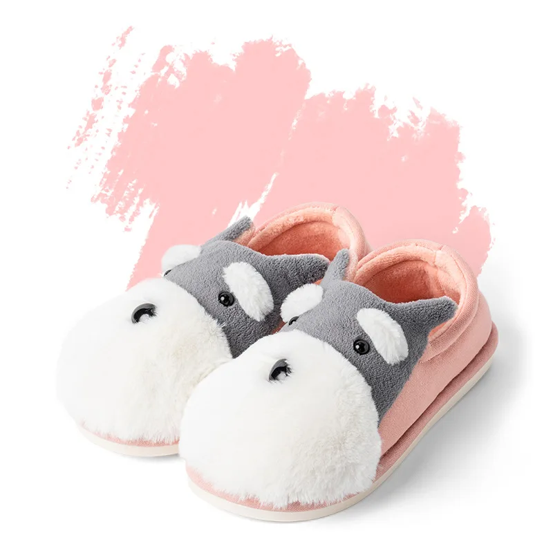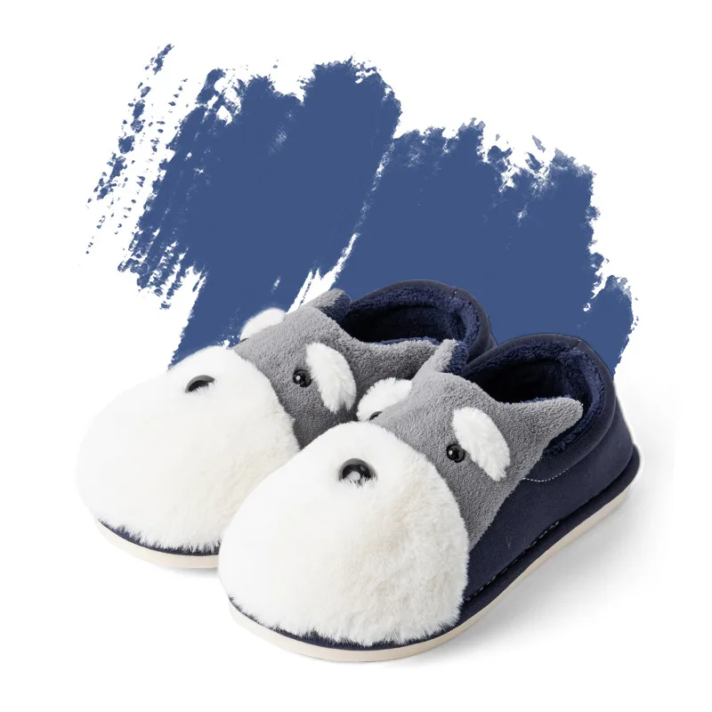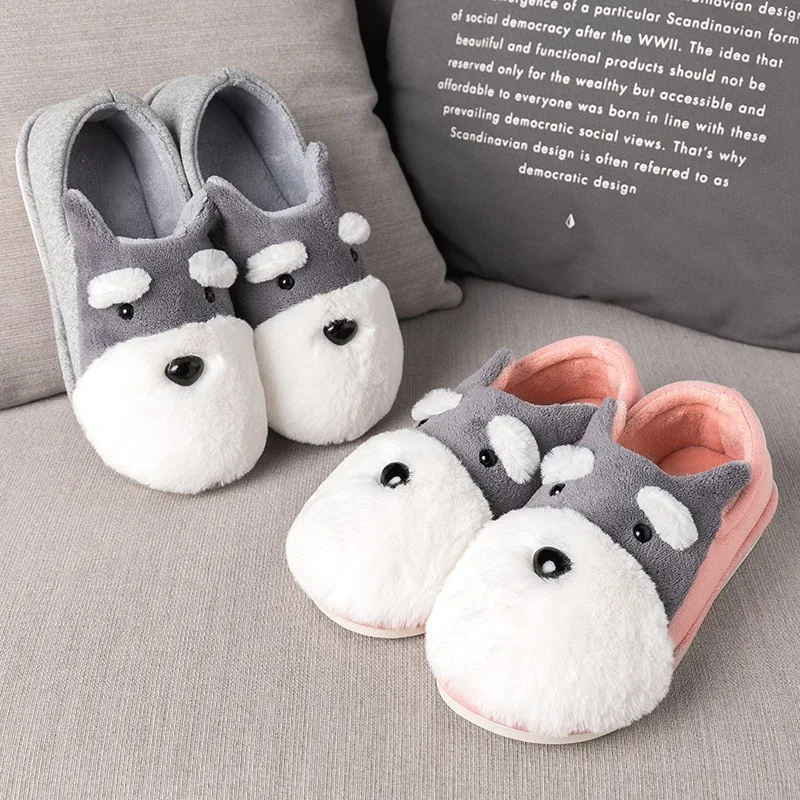 Зимние теплые домашние тапочки для мужчин и женщин; короткие плюшевые тапочки с изображением собаки; женская нескользящая Мягкая хлопковая домашняя обувь; тапочки для влюбленных